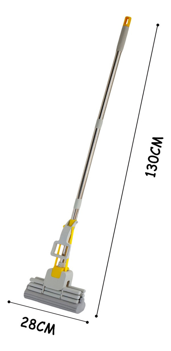 Lampazo mopa mágico super absorbente con escurridor integrado. Su cabezal de esponja PVA de 28 cm retiene hasta cinco veces su peso en agua, dejando pisos limpios y sin marcas.