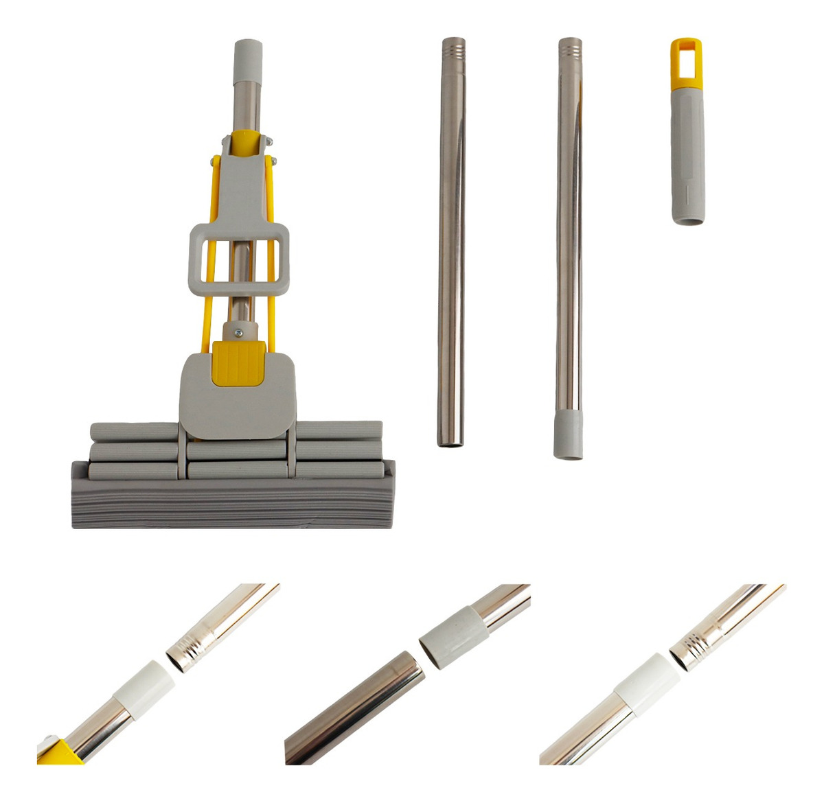 Mango metálico resistente, apto para uso diario; llega bajo muebles y rincones gracias a su diseño plegable. Ideal para baldosas, cerámica, vinílico o madera sellada, se enjuaga y seca rápido, evitando malos olores y hongos.