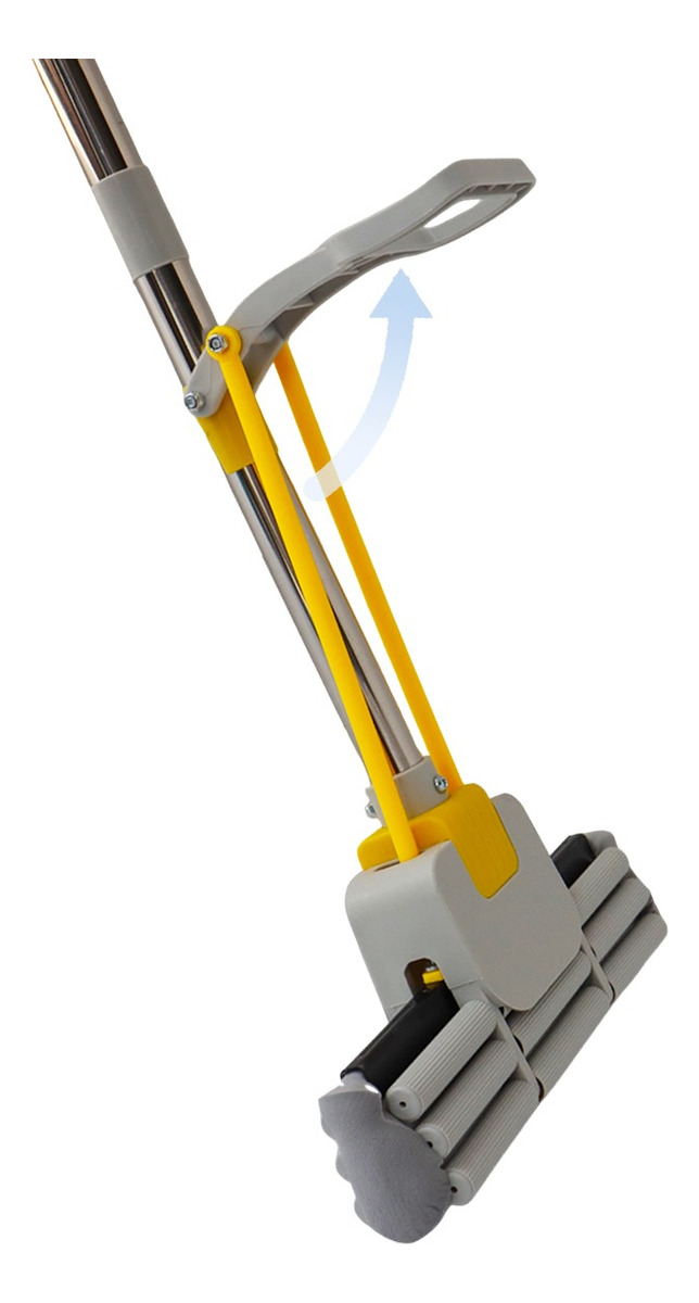 El sistema de rodillos exprime la esponja al tirar de la palanca, evitando salpicaduras y que tengas que ensuciarte las manos.