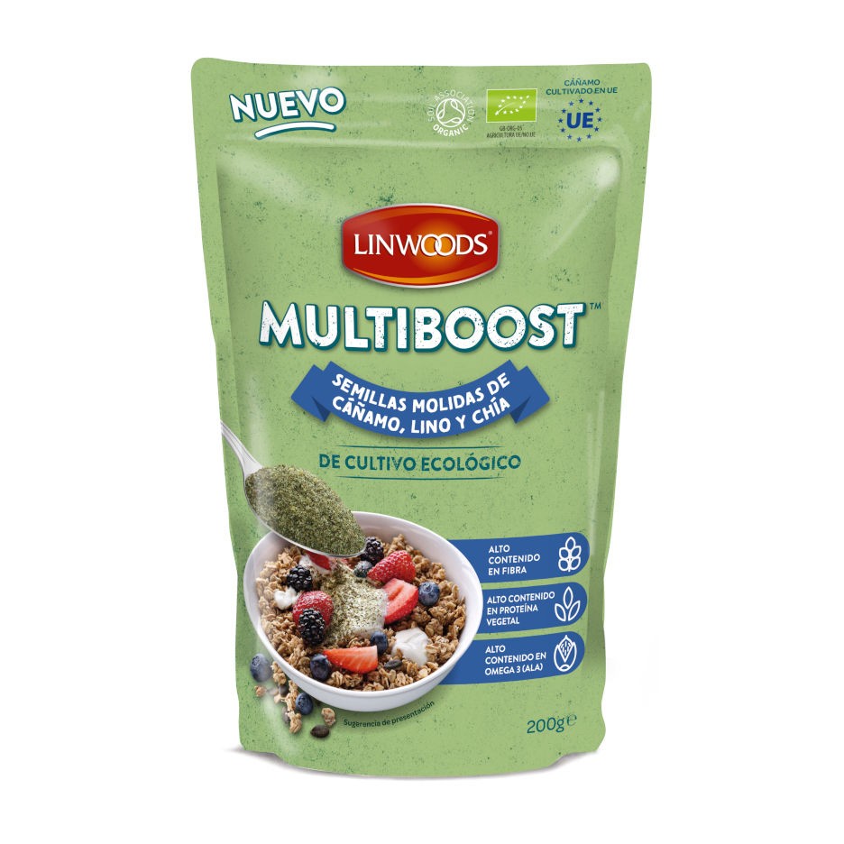 Linwoods Multiboost combina tres superalimentos altamente nutritivos: cáñamo, lino y chía. Estas semillas son conocidas por sus increíbles propiedades saludables y son una excelente fuente de proteínas, fibra, ácidos grasos esenciales, vitaminas y minerales.