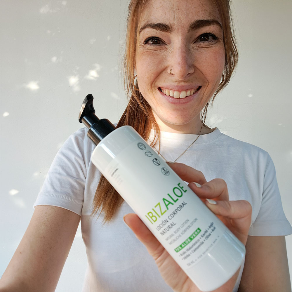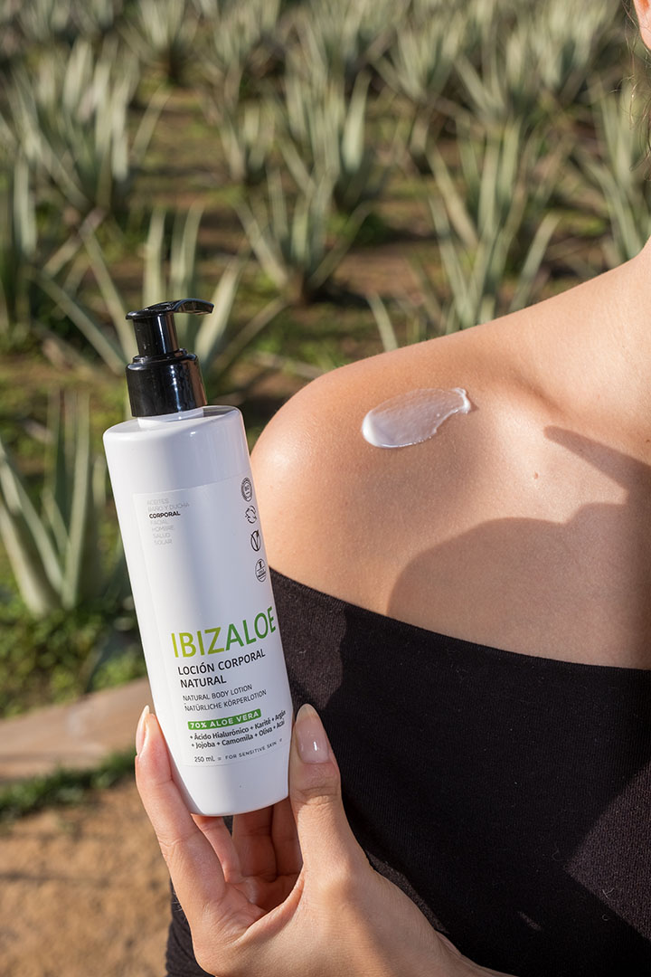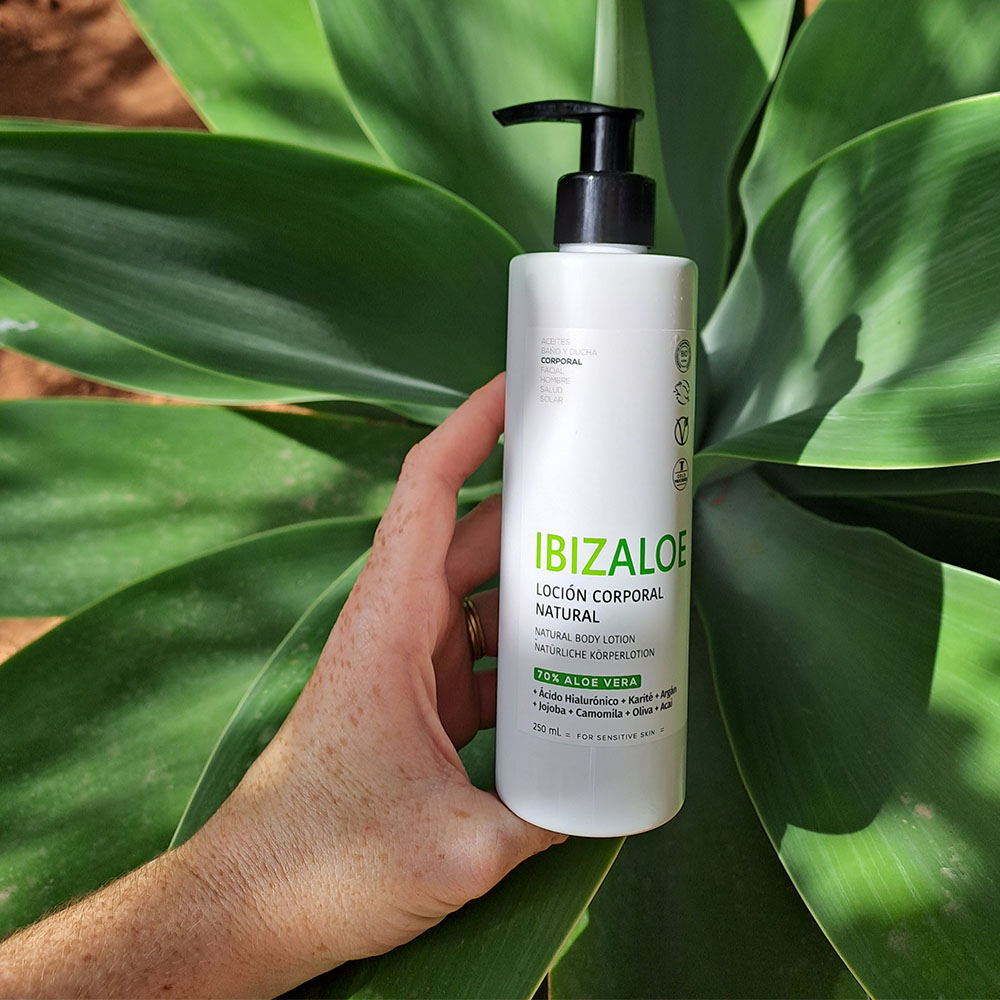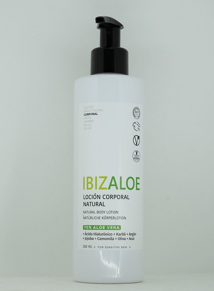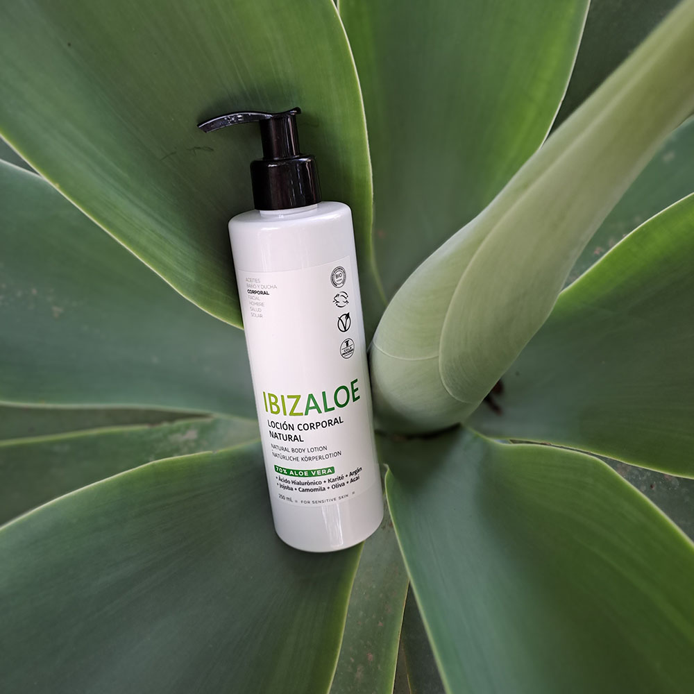 Loción corporal con Aloe Vera ecológico que hidrata, suaviza y refresca la piel. Textura ligera de rápida absorción, ideal para uso diario.