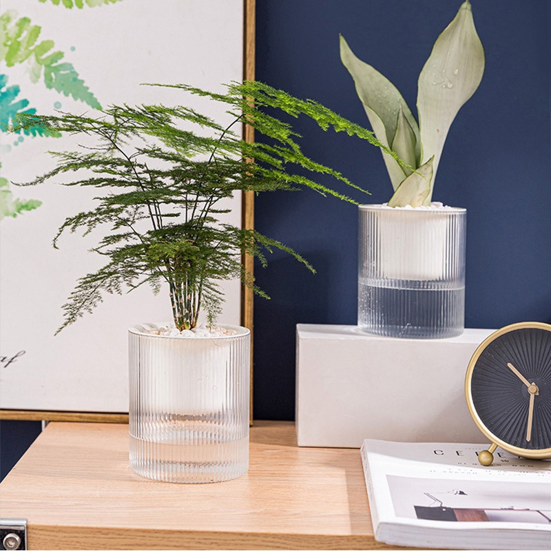 Maceta para hidropónia, no incluye planta ni piedras decorativas.