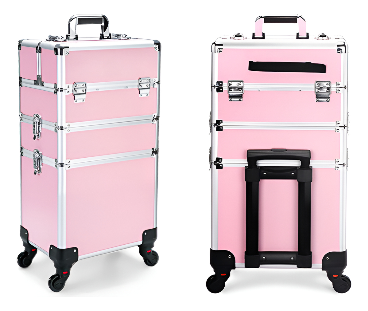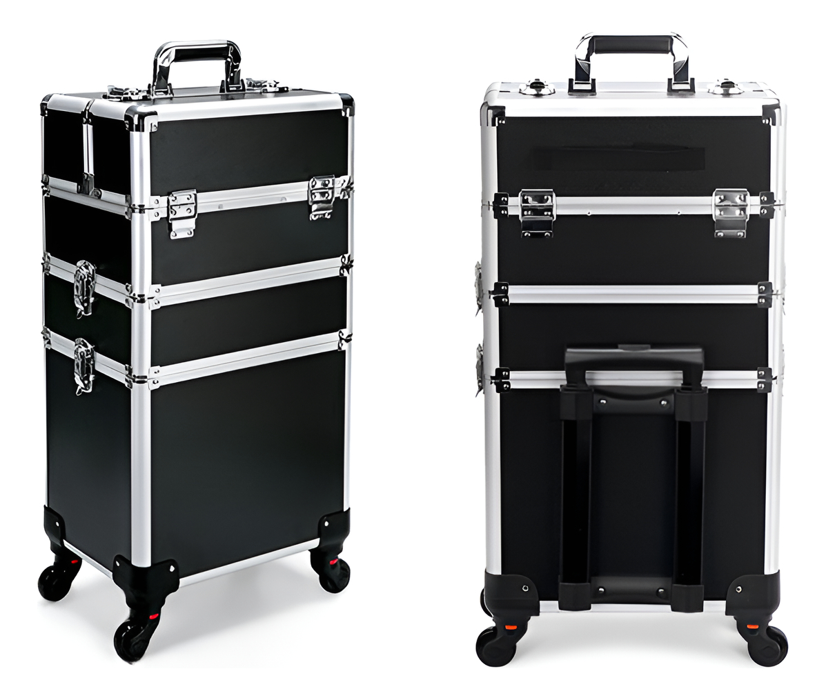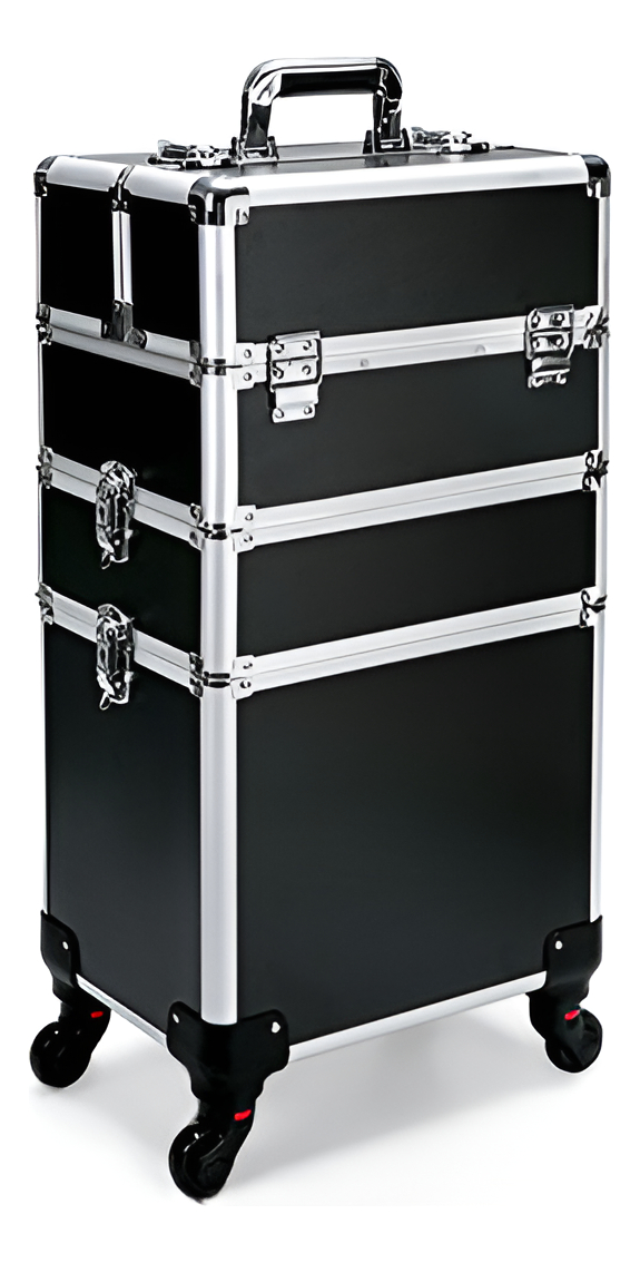 Organizá y transportá todo tu maquillaje y accesorios de forma profesional con esta maleta de maquillaje de 3 divisiones con ruedas, diseñada para estilistas, maquilladores y amantes de la belleza que buscan practicidad y estilo en cada detalle.