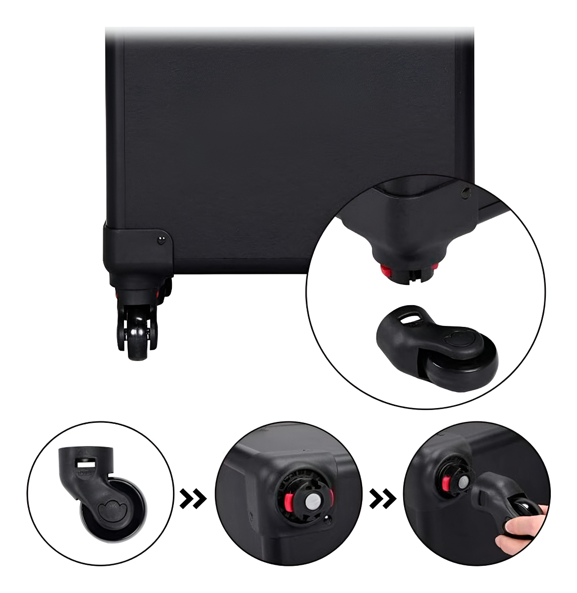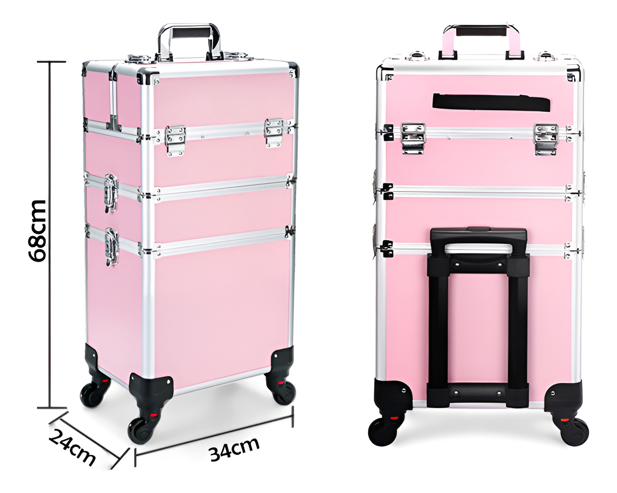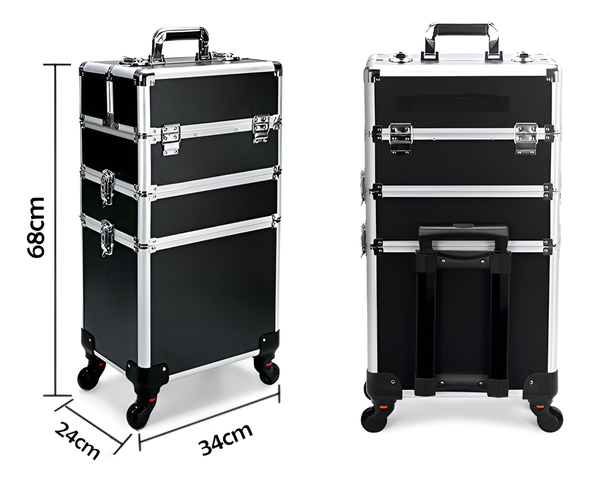 Organizá y transportá todo tu maquillaje y accesorios de forma profesional con esta maleta de maquillaje de 3 divisiones con ruedas, diseñada para estilistas, maquilladores y amantes de la belleza que buscan practicidad y estilo en cada detalle.