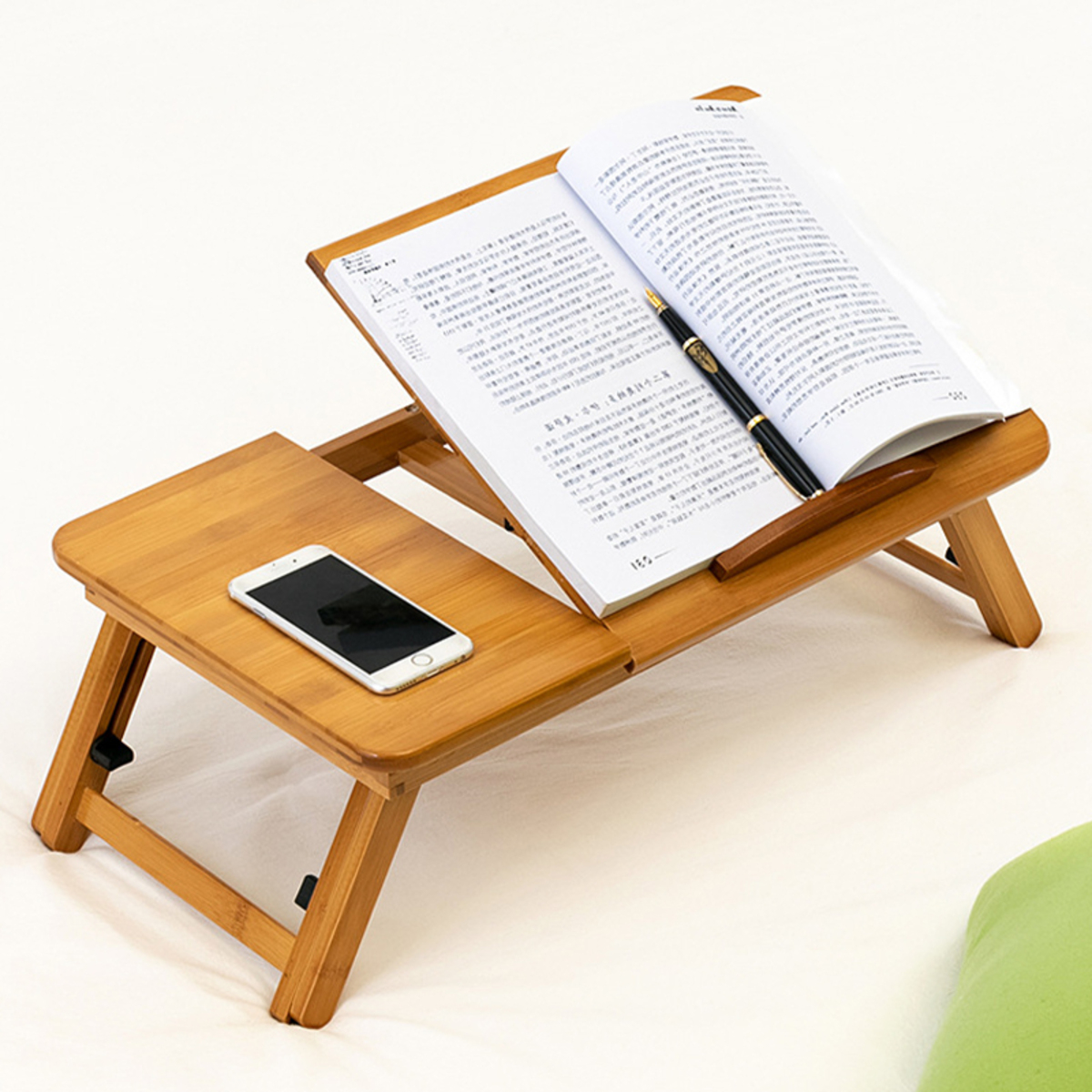 Disfrutá de la comodidad de trabajar, estudiar o leer desde tu cama o sofá con esta mesa plegable reclinable de madera. Su diseño práctico y ajustable la convierte en el complemento ideal para tu hogar.
