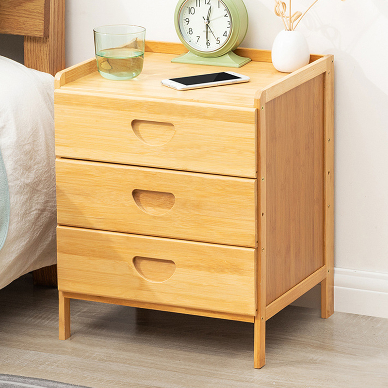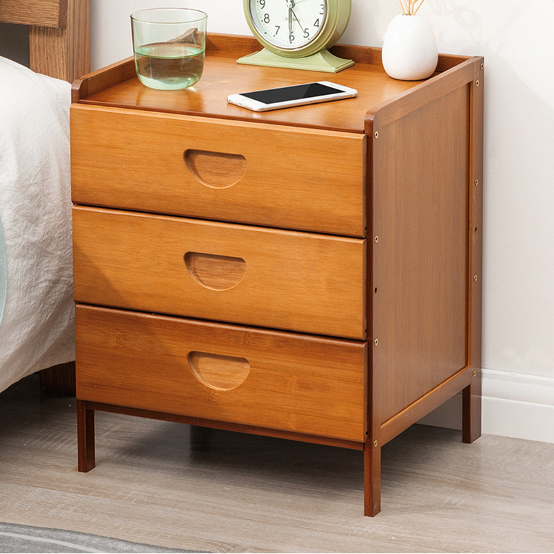 Mesa De Luz Bamboo Tres Cajones Para Dormitorio