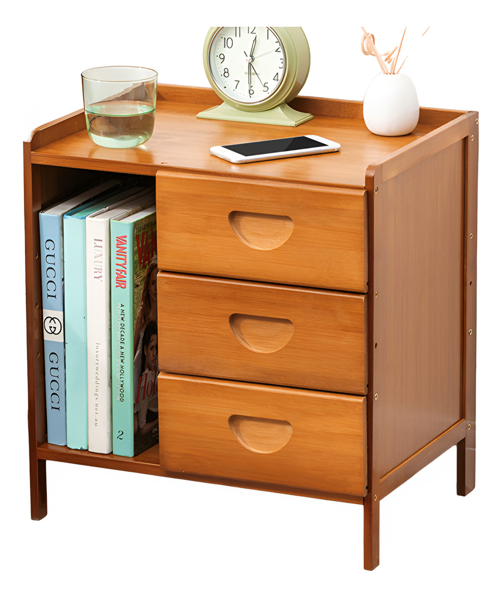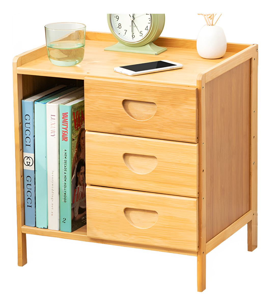 Mesa De Luz Dormitorio Con Tres Cajones Espacio Para Libros