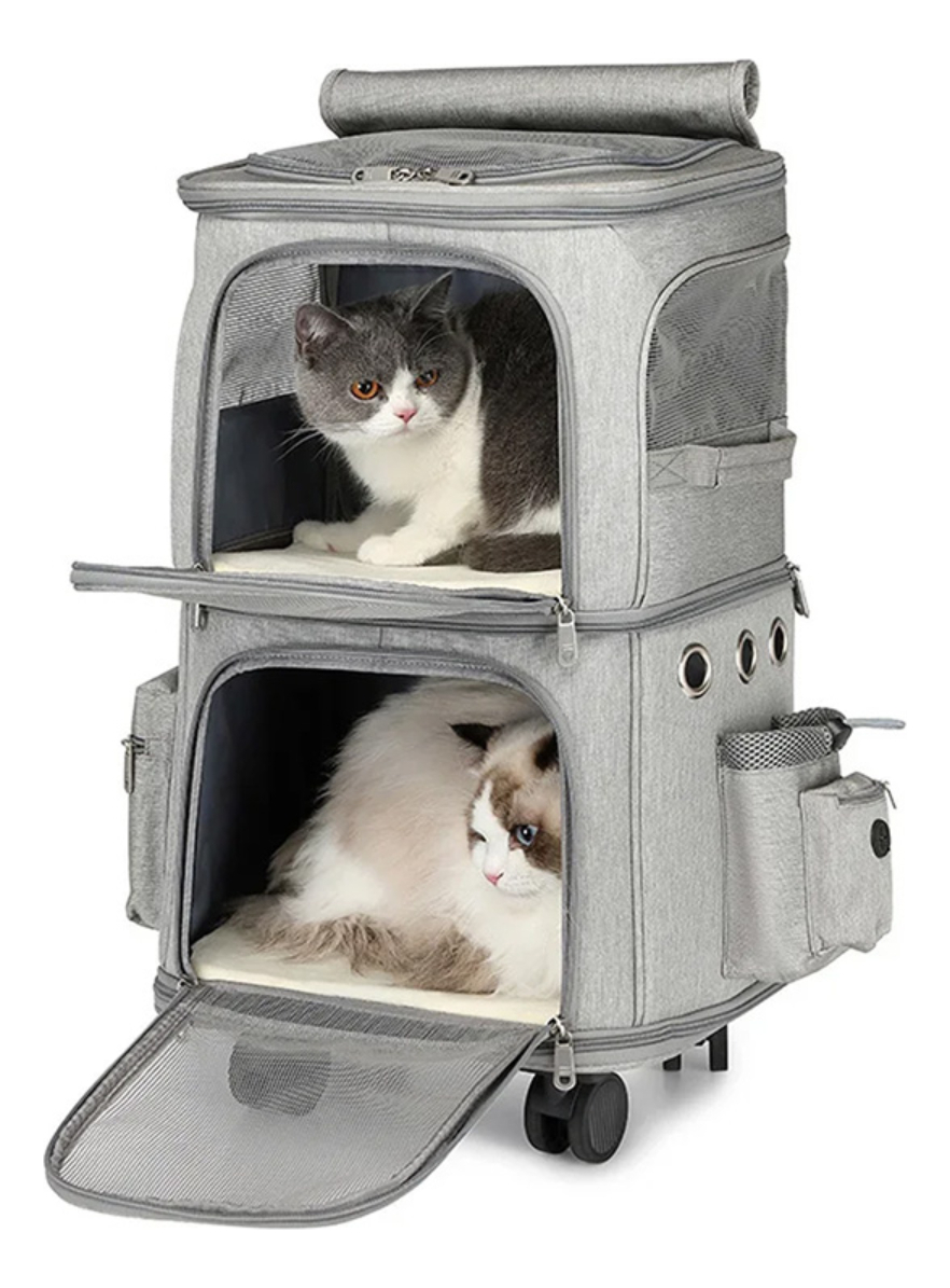 Mochila Carrito Transportador Gatos Dos Pisos Con Ruedas