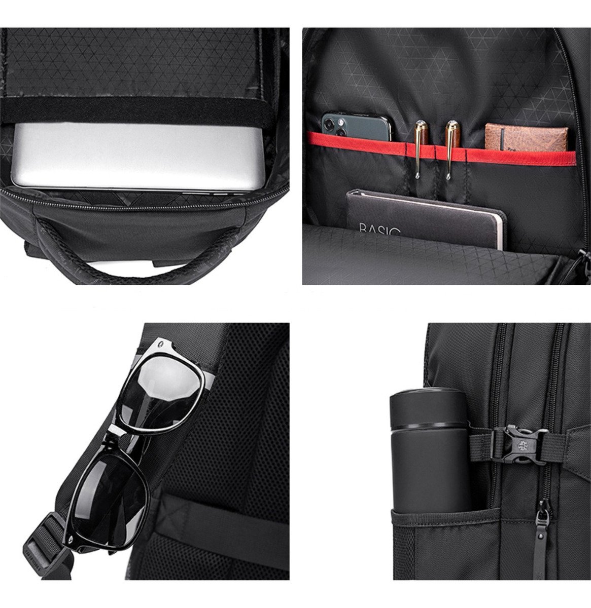 – Múltiples compartimientos para guardar mas que solo la laptop. – Bolsillo para guardar lentes