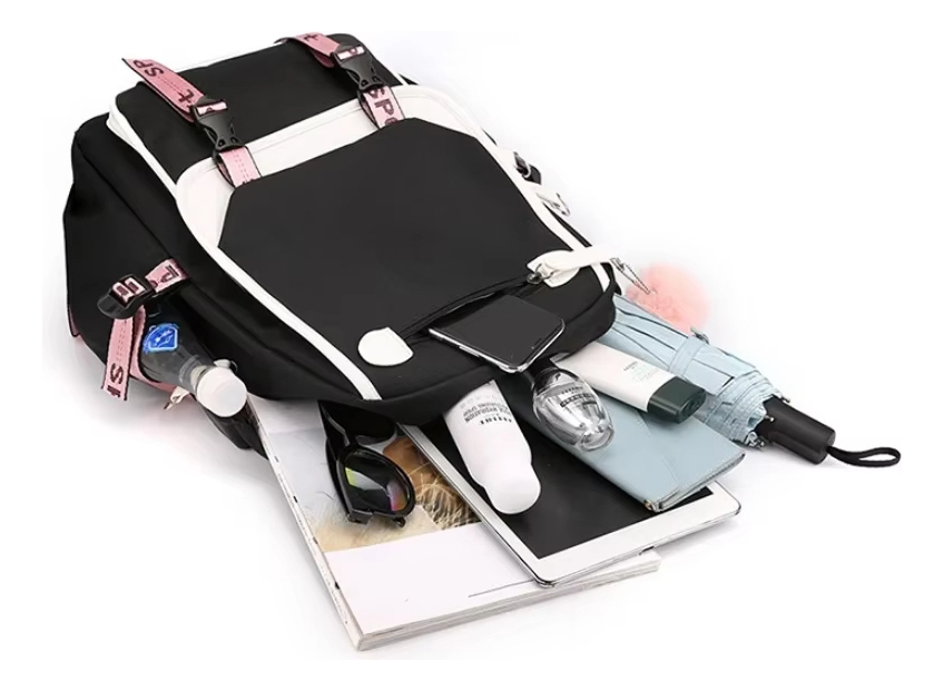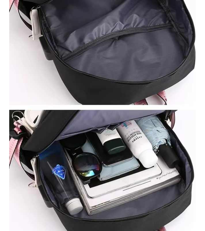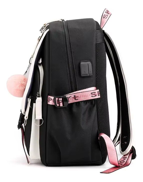 Esta adorable mochila kawaii es perfecta para estudiantes. Su diseño impermeable protege tus pertenencias en todo momento, mientras que su puerto USB integrado te permite cargar tus dispositivos cómodamente. Con un compartimento especial para notebook y múltiples bolsillos, es ideal para la escuela, la universidad o el día a día.