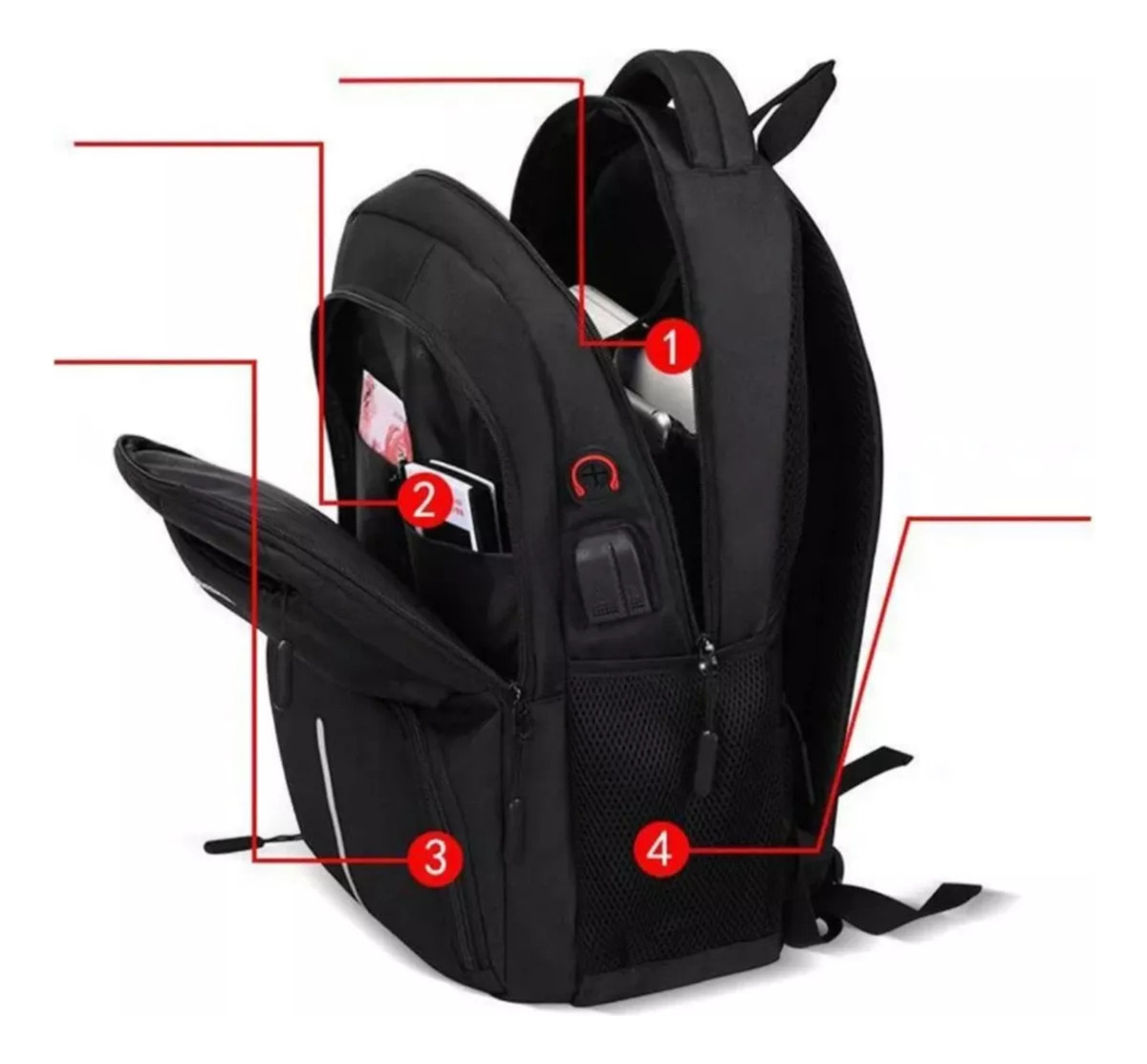 Esta mochila urbana, fabricada en resistente tela impermeable, es perfecta para estudiantes y viajeros que buscan estilo y funcionalidad. Diseñada para llevar tu notebook y más, cuenta con 5 bolsillos externos, incluyendo dos bolsillos grandes con separadores para una mejor organización. Además, incluye entrada USB y auxiliar, facilitando la carga de dispositivos y el uso de auriculares mientras te desplazas.