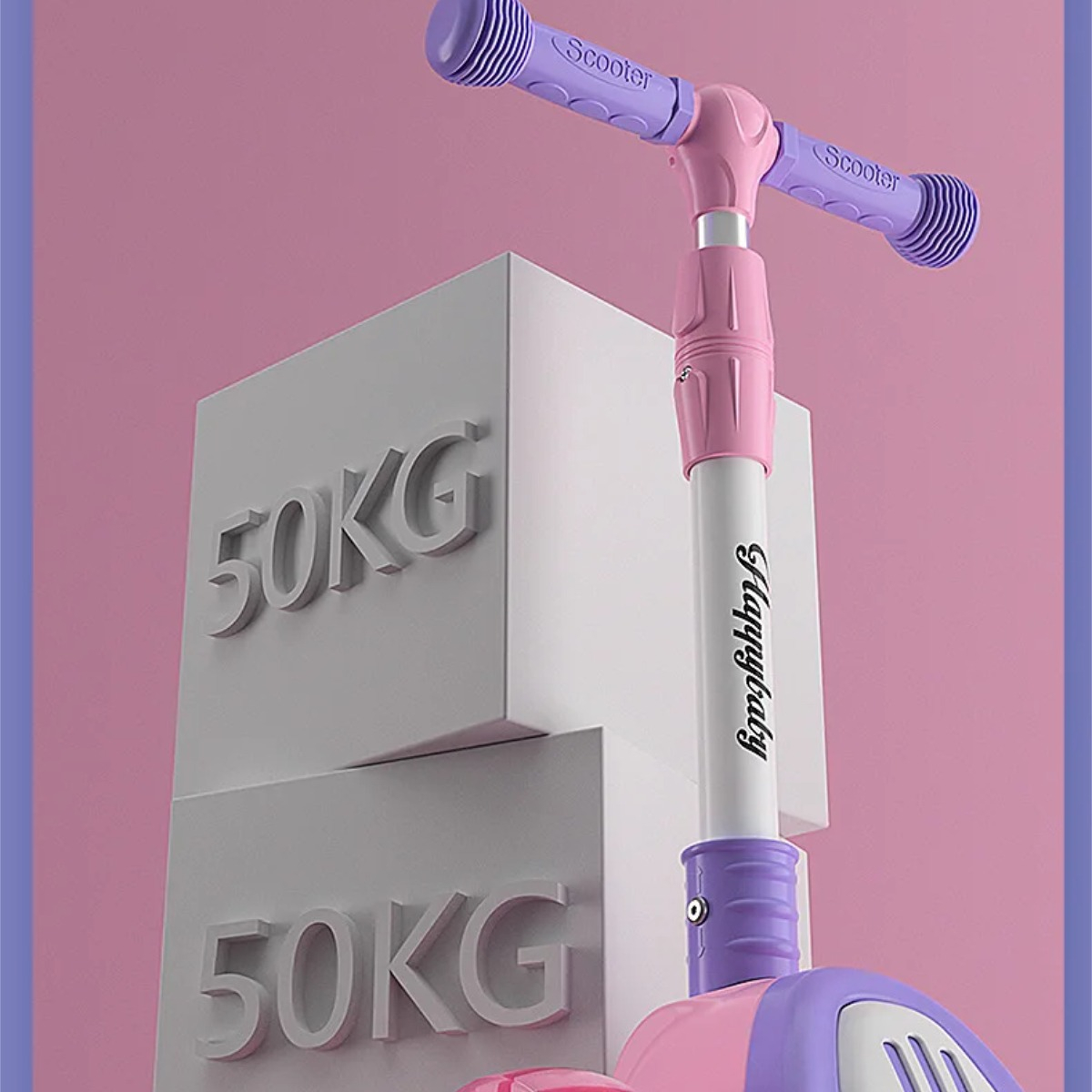 Monopatin Infantil 3en1 Plegable C/luces Y Palanca De Empuje