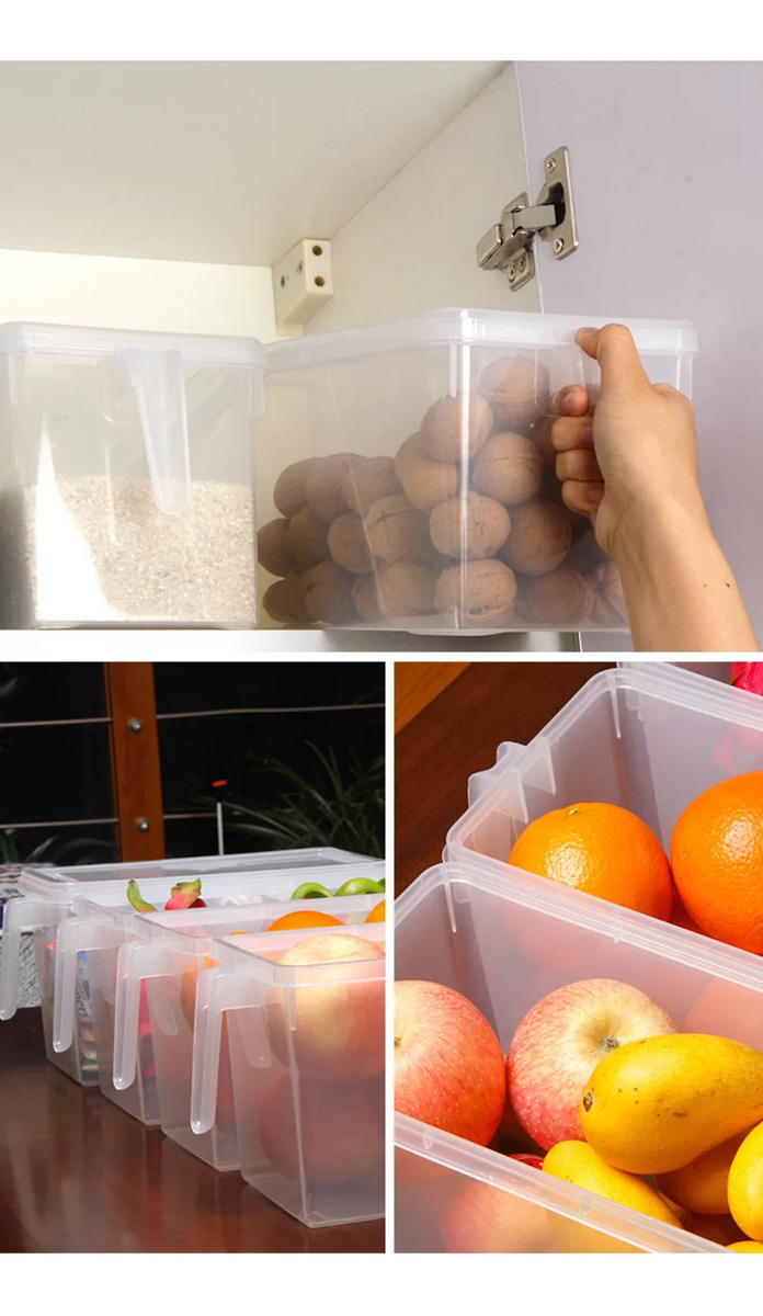– Tamaño: 31*15.5x16cm, los recipientes de almacenamiento grandes son adecuados para nevera, congelador, gabinete de despensa, cocina y armario. – Material: hecho de plástico PP duradero, translúcido, libre de BPA, respetuoso con el medio ambiente, reutilizable y apto para alimentos. – Diseño perfecto: útil asa frontal resistente hecha para transportar y poner fácilmente en el refrigerador, sin tapa; plástico de alta visibilidad es conveniente para ver lo que hay en el interior y rápidamente encontrarlo; estas cajas de almacenamiento son realmente fáciles de limpiar. – Mantente fresco: organizador de cocina con tapa anti polvo que mantiene los productos frescos y secos, adecuado para zanahoria, pepino, tomate, cebollas, pimientos, manzanas, naranja, plátano, fresa, limón, huevo, patata, carne y pescado. Por último, no utilices el recipiente de almacenamiento de alimentos en un microondas u horno.