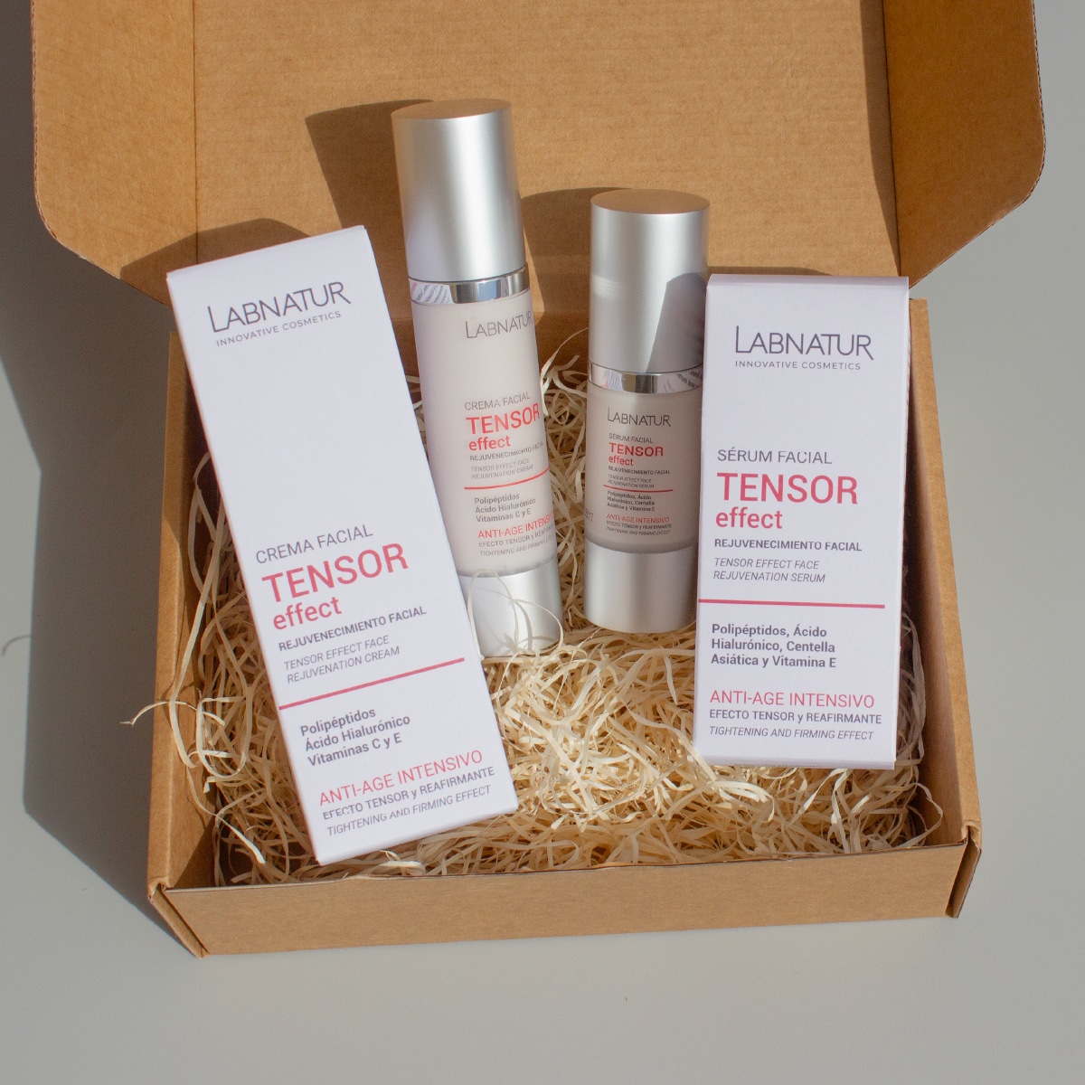 Nuestro Pack Cosmética Anti-Aging Tensor Effect Labnatur está diseñado para combatir los signos visibles del envejecimiento, restaurando la firmeza y elasticidad de la piel.