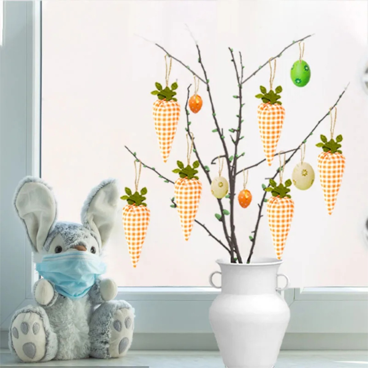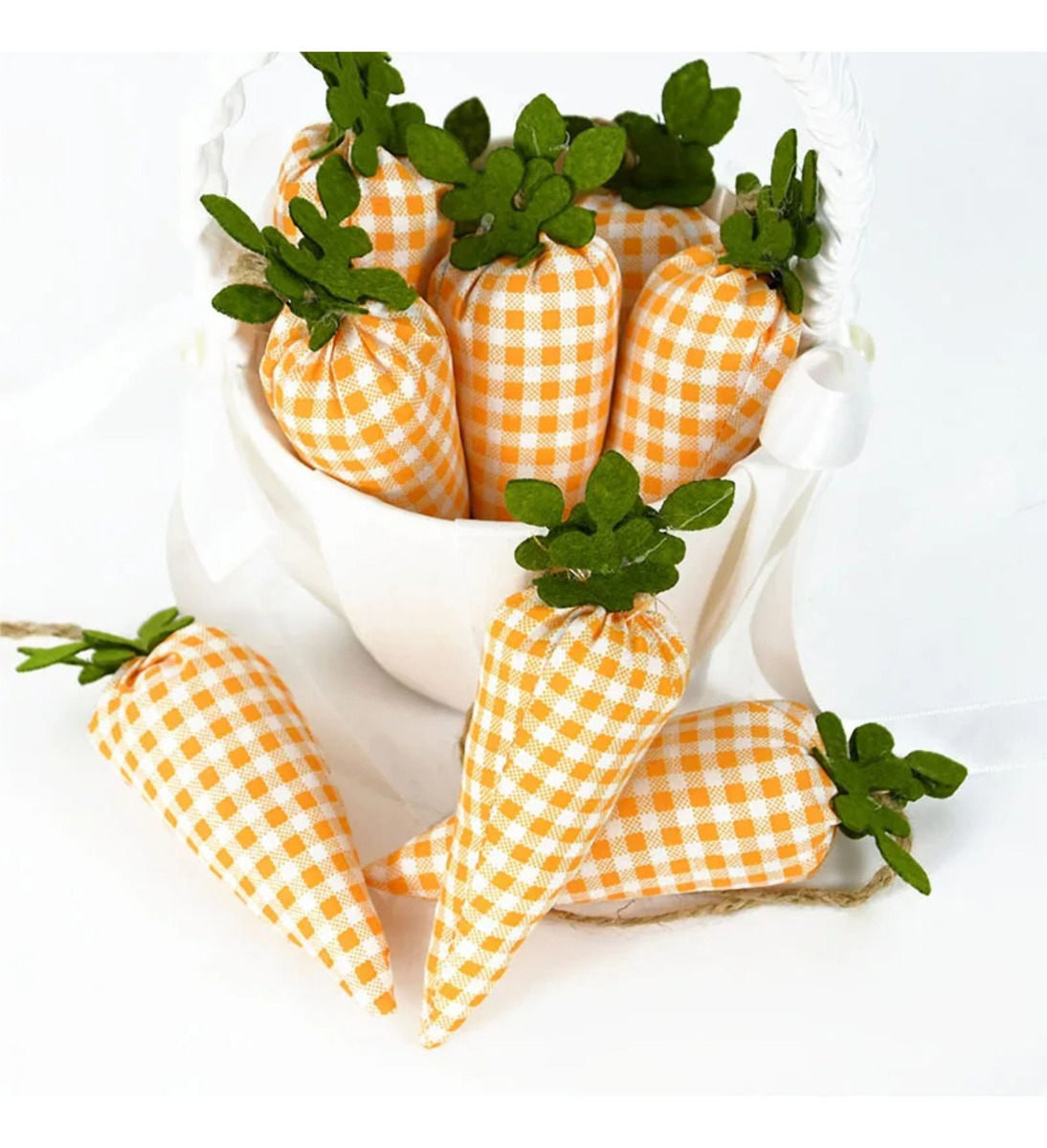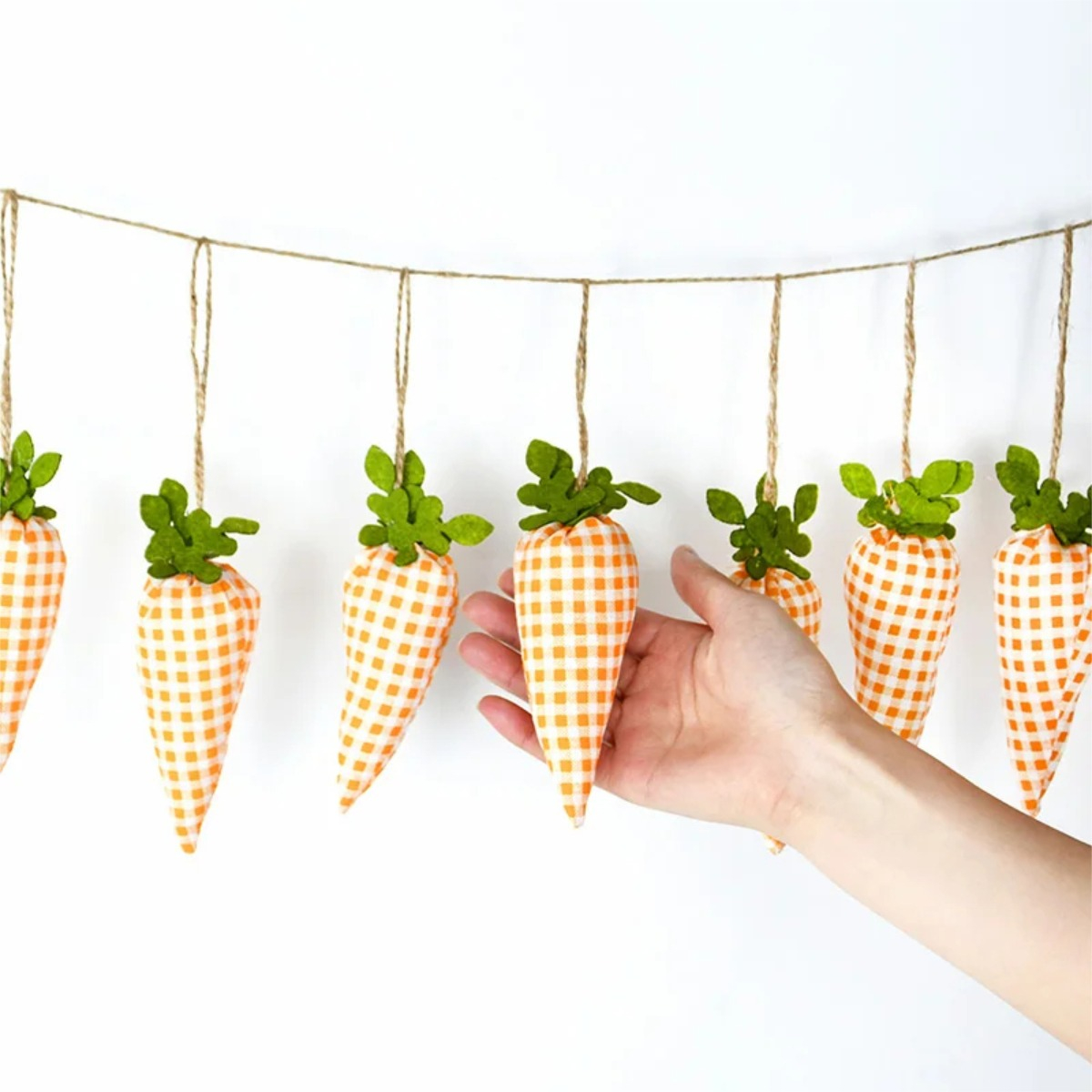 Añadí un toque encantador y lleno de vitalidad a tu espacio con estos adornos colgantes con diseño de zanahorias. fabricados en tela, con diseño a cuadros, ideal para colgar en cualquier rincón de tu hogar o espacio de trabajo.