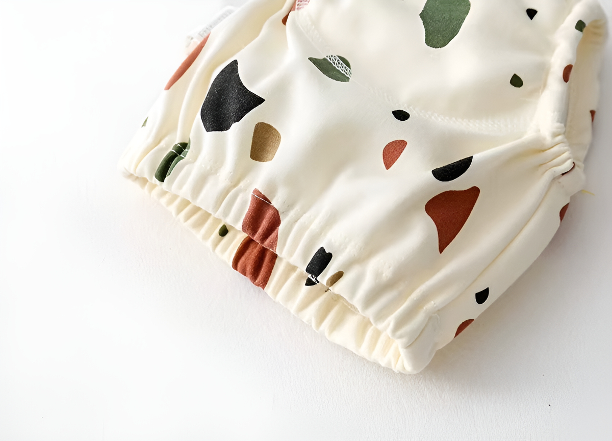 Su diseño ergonómico con elástico en cintura y piernas asegura un ajuste perfecto, evitando filtraciones y permitiendo libertad de movimiento. Es fácil de lavar y reutilizar, lo que lo convierte en una alternativa ecológica y económica frente a los pañales descartables.