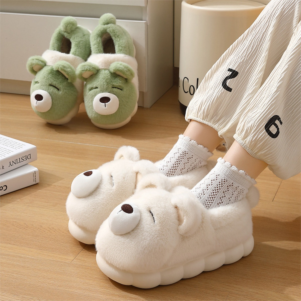 Pantufla super abrigadita, cerrada para proteger los tobillos del frío, suela de pvc. Diferentes colores y talles con diseño osito