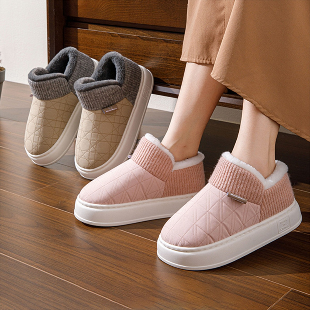 Pantufla super abrigadita, cerrada para proteger los tobillos del frío, suela de pvc. Diferentes colores y talles