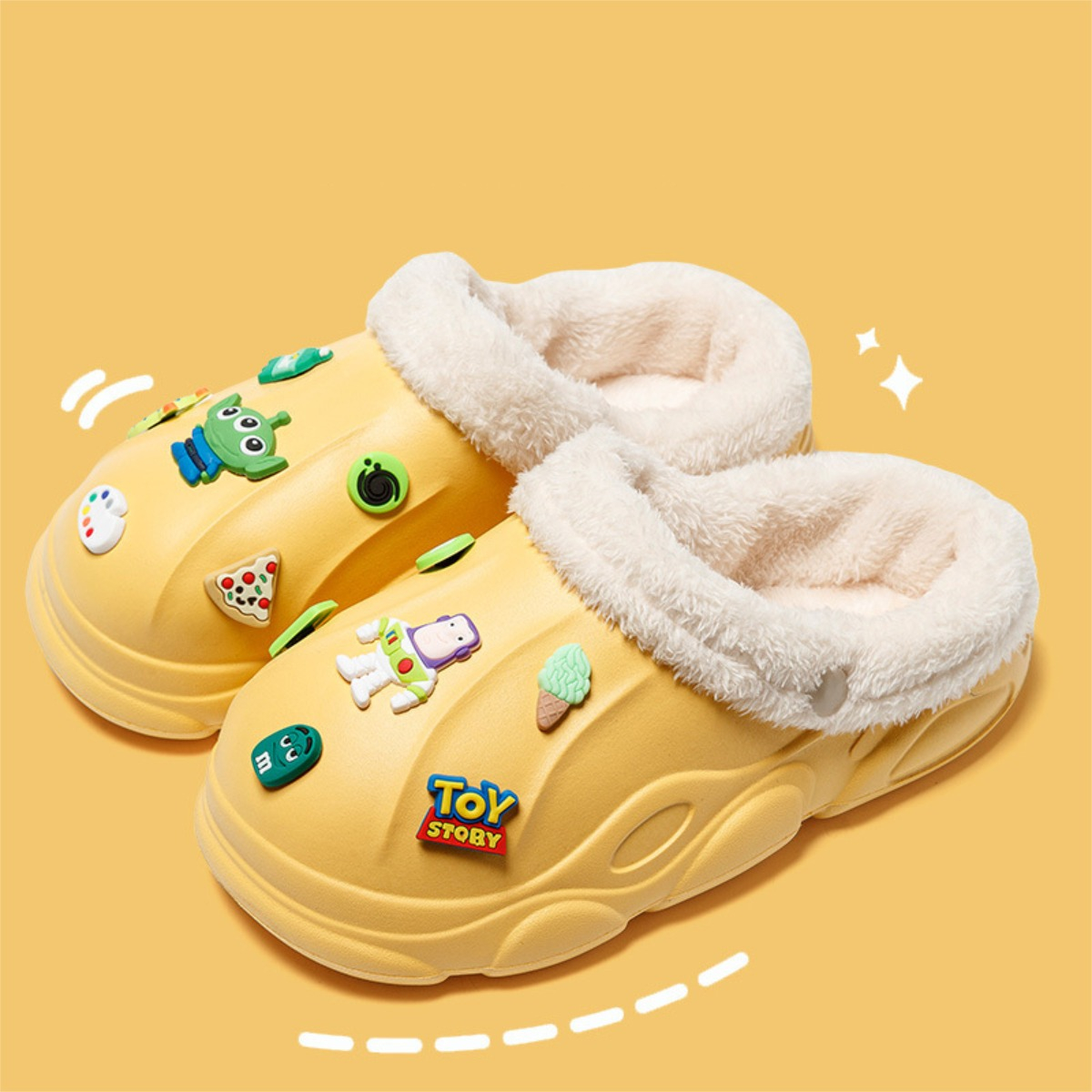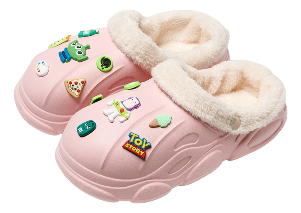 ¡Divertidas y calentitas!Pantuflas infantiles con pines decorativos que puedes poner o quitar según como quieras decorarlas. ¿Lo mejor? El plush interior es extraíble, lo que las hace la opción ideal para todo el año, simplemente desprende los botones que hay a ambos lados y guardalo hasta el próximo invierno.