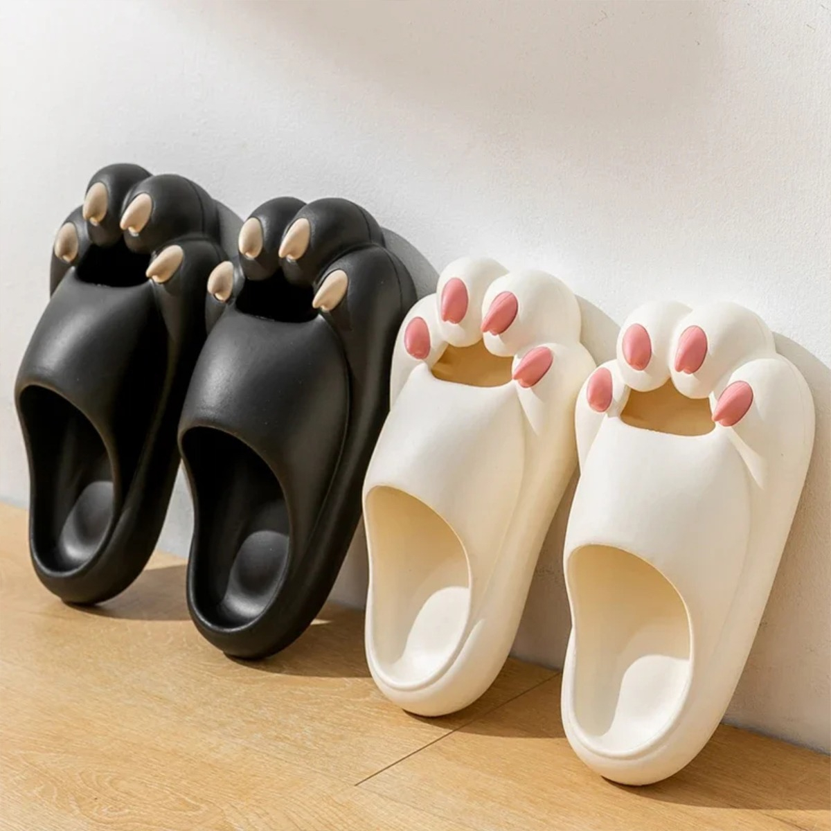 Chancletas tipo pantuflas gomones con diseño de monstruo con garras, varios talles y colores disponibles.