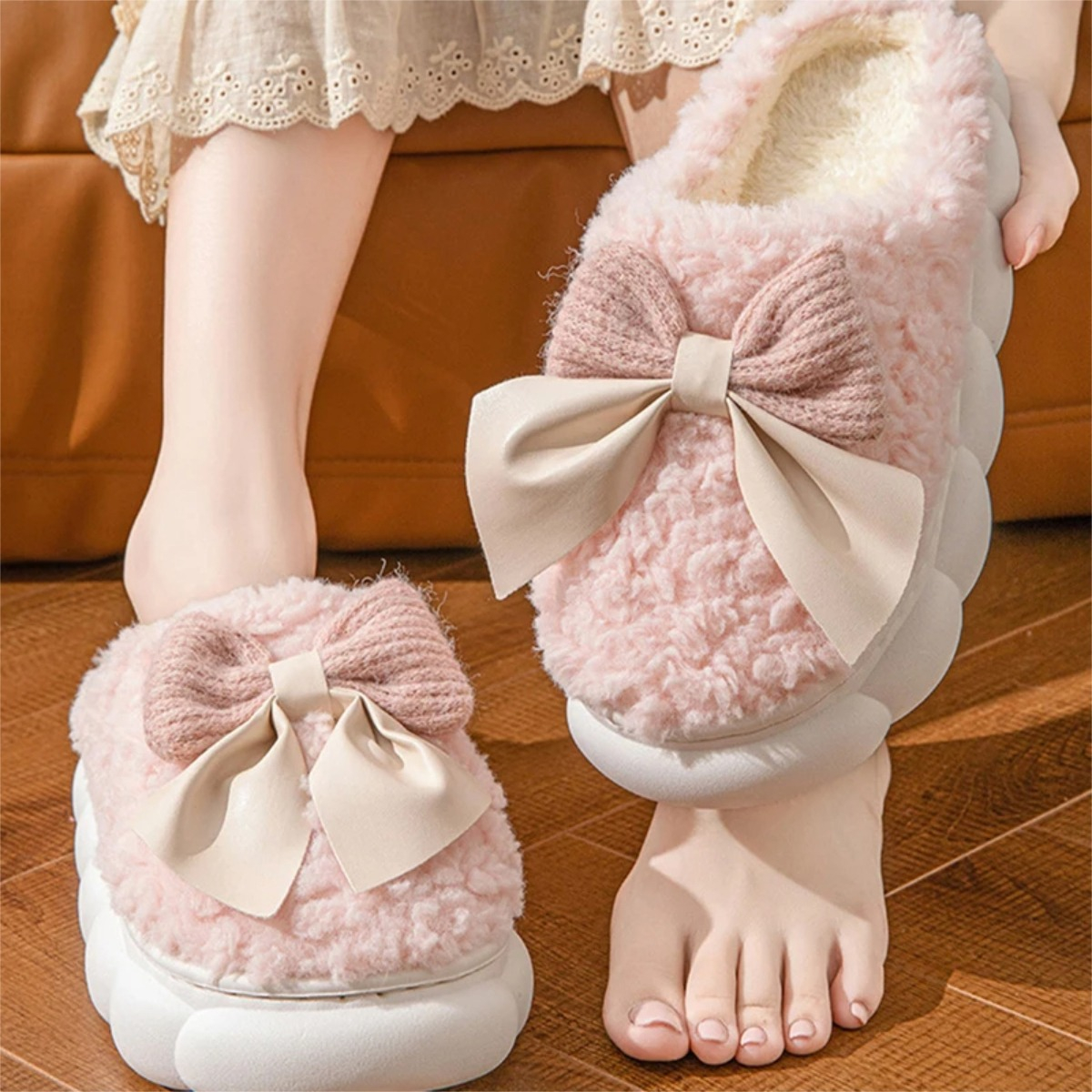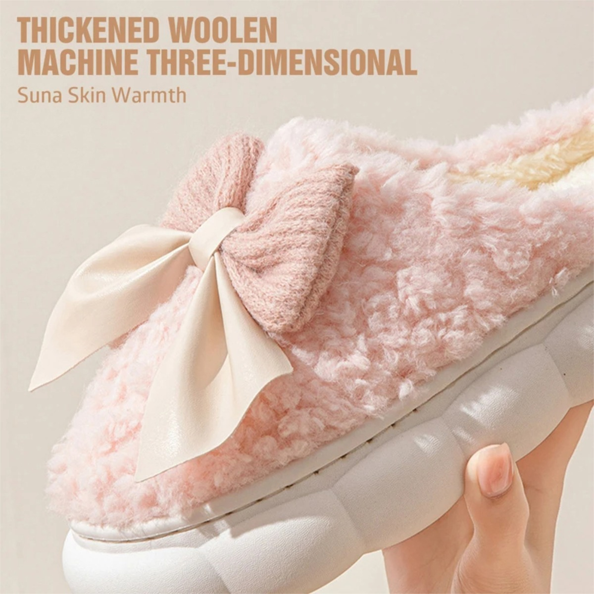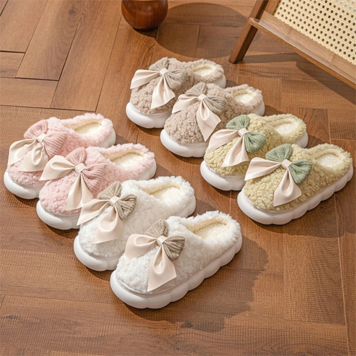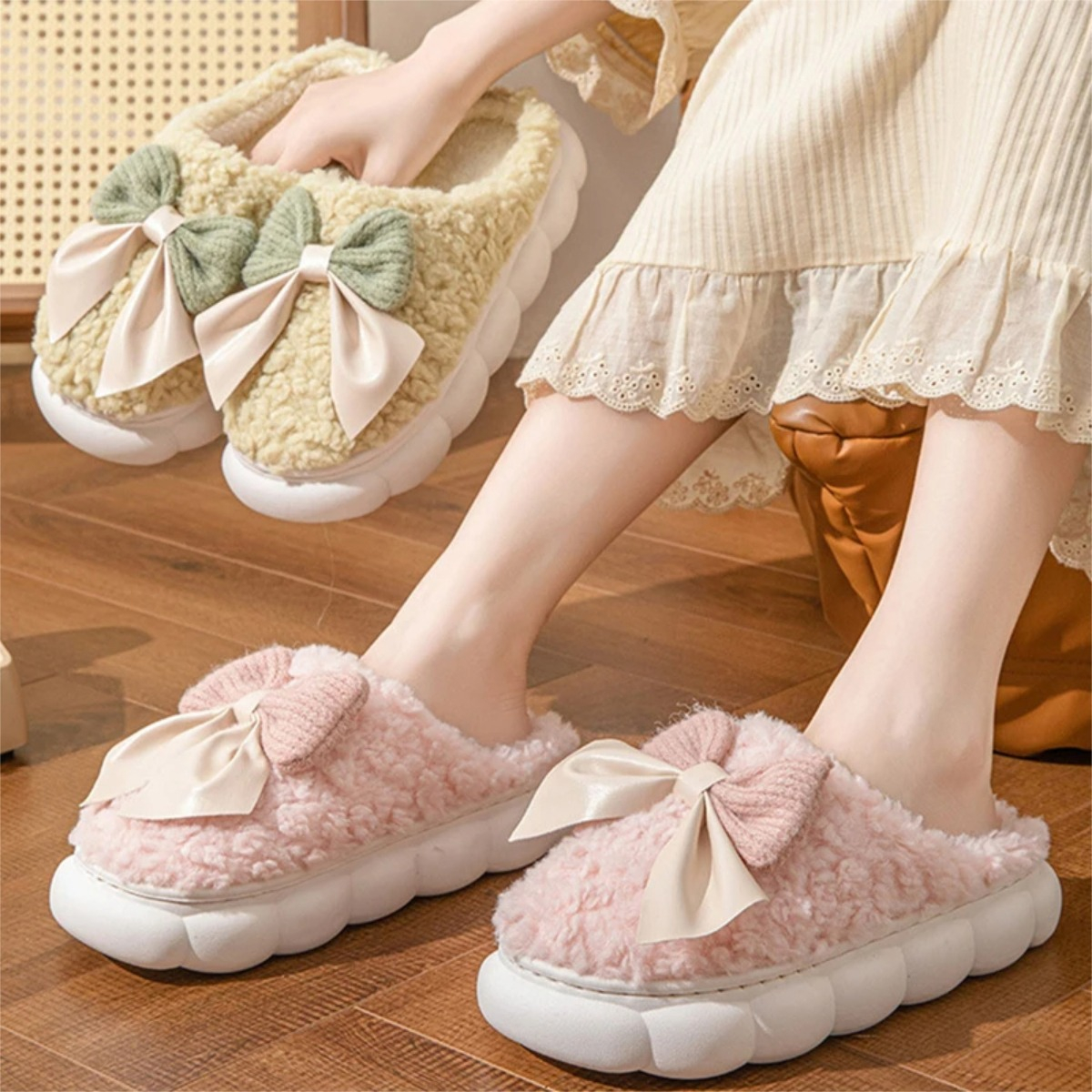 Pantufla Invierno Toda En Corderito Super Calentitas Moña