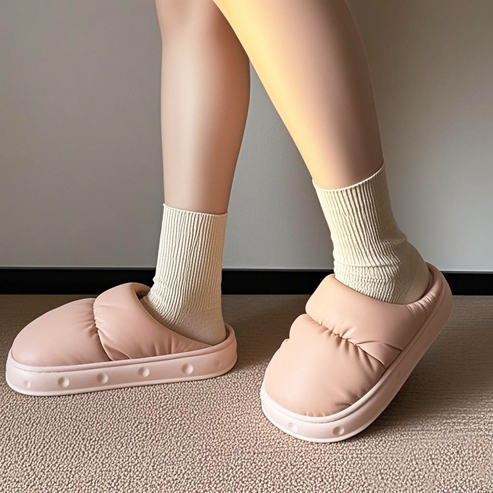 Disfrutá de la máxima comodidad con estas pantuflas abiertas estilo puff para adultos. Su diseño moderno y acolchonado brinda una sensación de suavidad al caminar, ideal para usar en casa durante los días frescos. El interior está forrado con suave corderito sintético, que abriga y envuelve los pies en una calidez reconfortante. Su suela resistente y antideslizante ofrece estabilidad y durabilidad. Prácticas, livianas y súper cómodas: el complemento perfecto para tu descanso diario.