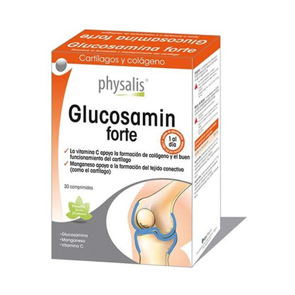 Physalis Glucosamin forte contiene glucosamina, un elemento base del cartílago que ayuda a mantener la flexibilidad. Además, este completamento alimenticio contiene una alta concentración de vitamina C que contribuye a la formación del colágeno para la preservación del cartílago articular. El manganeso es un elemento clave para contribuir a la formación del tejido conectivo sano.