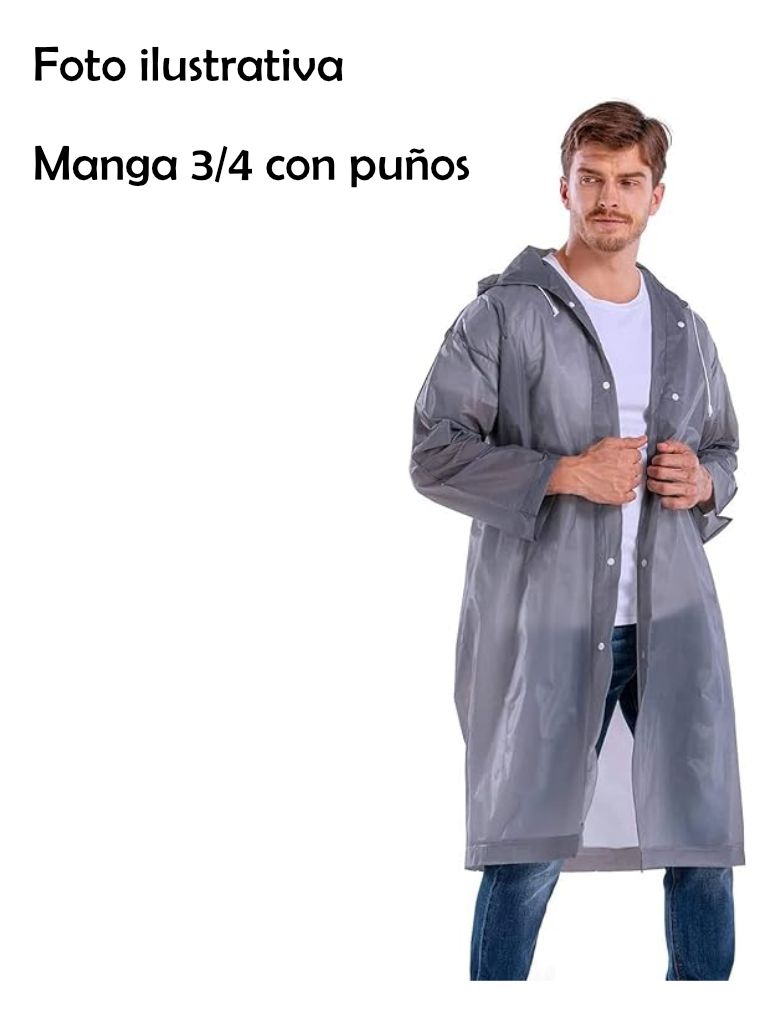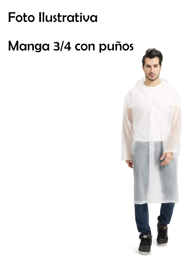 Mantente seco en los días lluviosos con este práctico chubasquero impermeable. Con un diseño cómodo y ligero, cuenta con botones frontales para un fácil ajuste y una capucha que protege de la lluvia. Ideal para usar en cualquier actividad al aire libre, su material impermeable garantiza que estarás completamente protegido del agua. Es fácil de plegar y guardar, perfecto para llevar en la mochila o el coche en caso de emergencias.