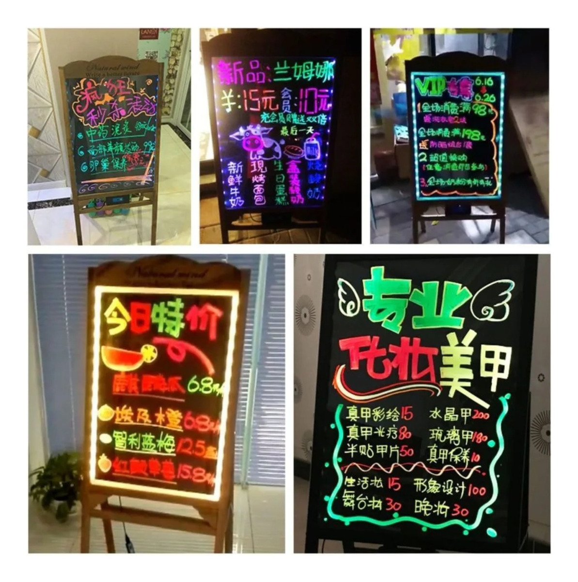 Pizarra Cartel Led 60x40cm Con Soporte Y Gancho + Accesorios