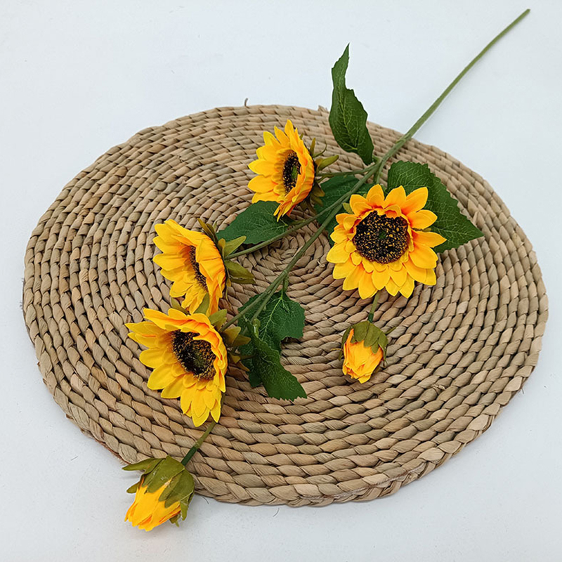 Planta Ramo Girasol Artificial 5 Flores 70 cm