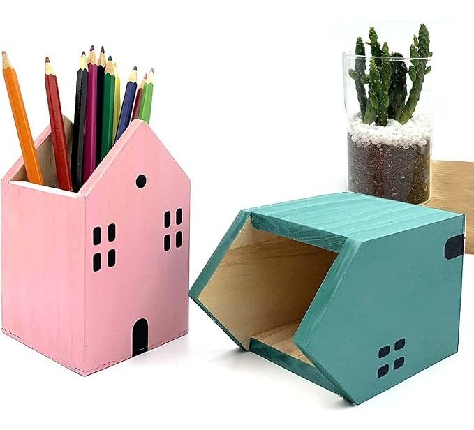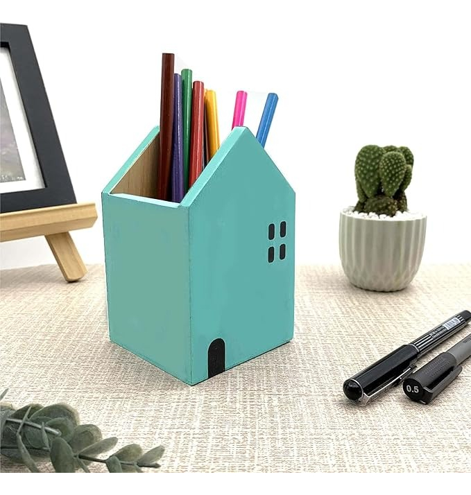 Portalápices Organizador de Madera para Escritorio con Diseño de Casitas, ideal para mantener tus útiles ordenados con un toque decorativo. Fabricado en madera resistente, su diseño en forma de casitas aporta calidez y estilo a cualquier espacio. Perfecto para lápices, bolígrafos y otros accesorios de oficina o estudio.