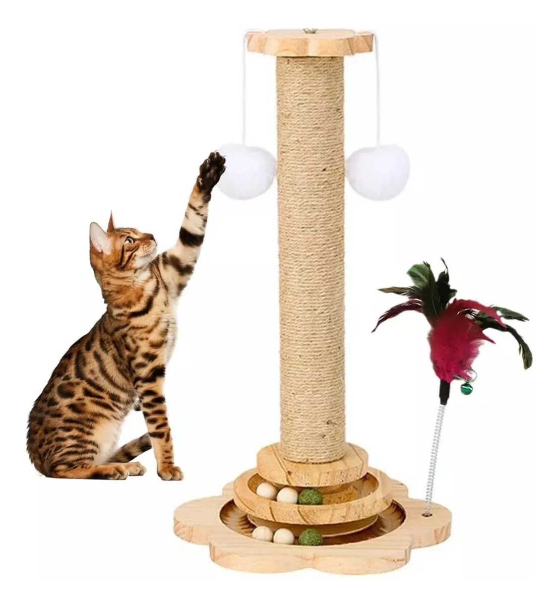 Poste Rascador Para Gatos Juego Con 8 Pelotas Interactivo