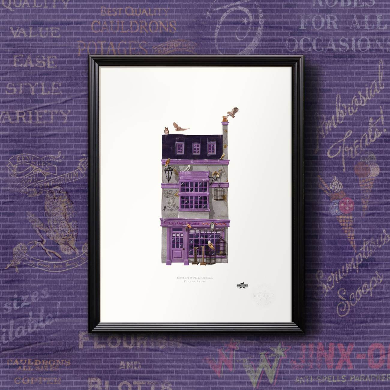 El Póster Emporio De La Lechuza Minalima está impreso en material de alta calidad, asegurando que los colores vivos y los detalles finos permanezcan intactos a lo largo del tiempo. Esta obra de arte no solo embellece cualquier pared, sino que también sirve como un recordatorio constante del papel crucial que las lechuzas juegan en el universo de Harry Potter. Perfecto para añadir a tu colección o para regalar a un amante de las lechuzas y la magia.