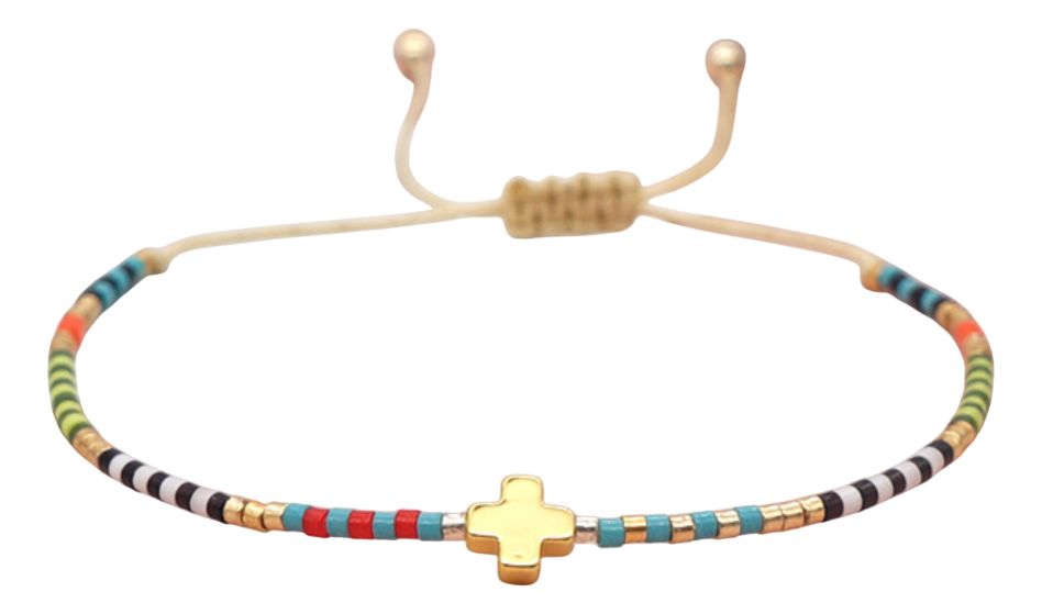 Pulsera Delicada En Mostacillas Varios Colores Moderna Cruz