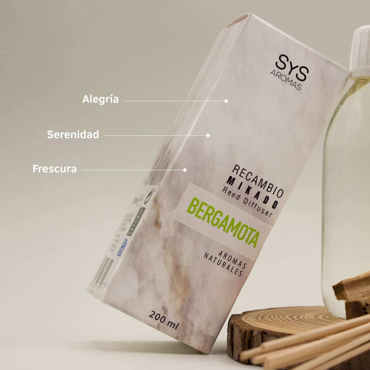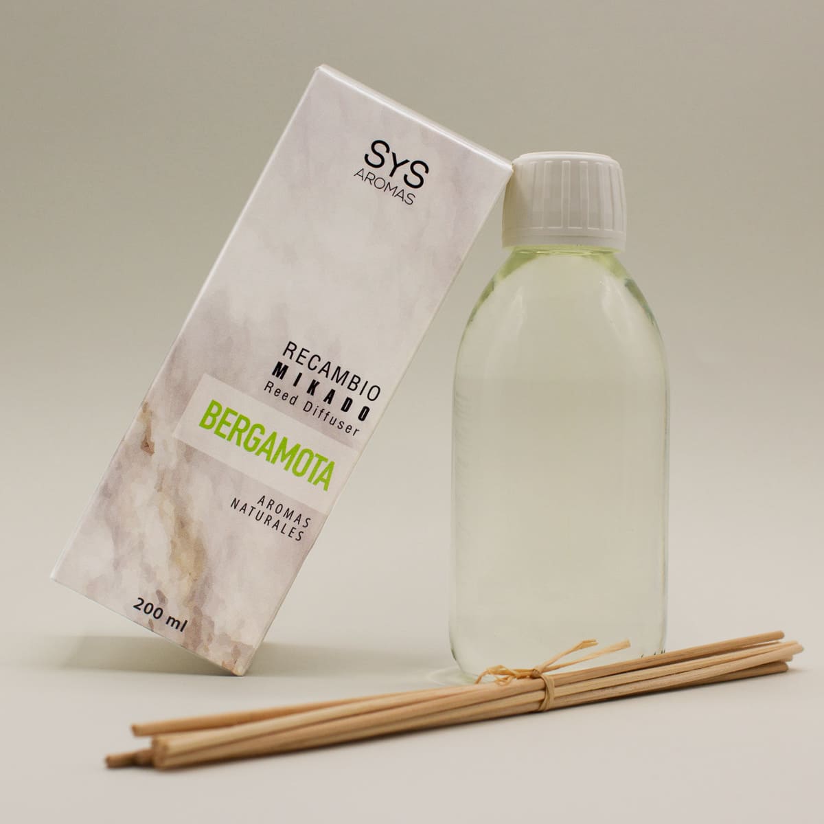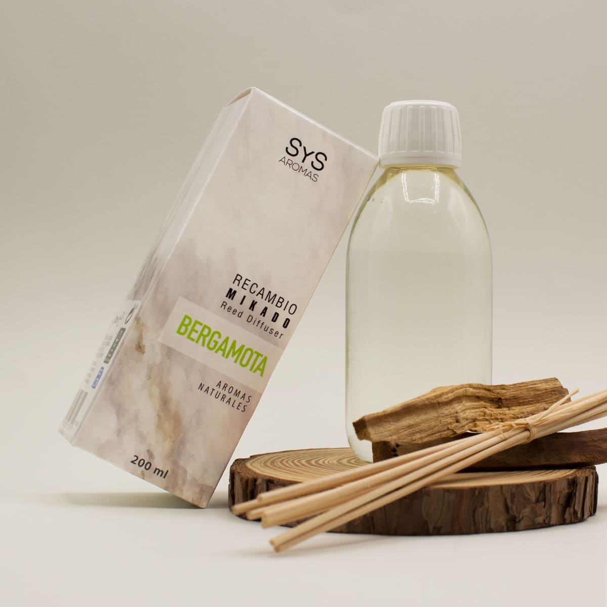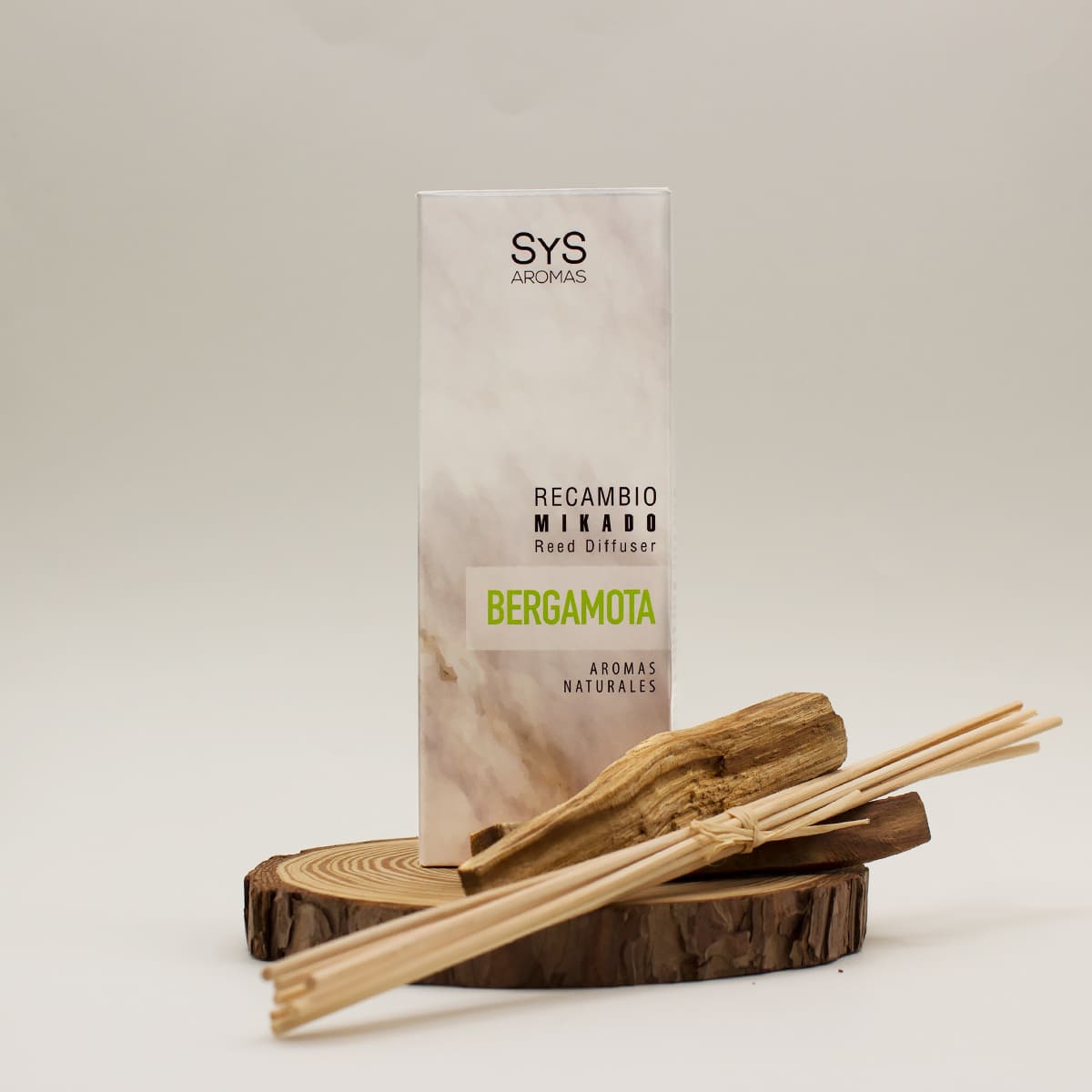 Recambio Mikado Bergamota 200ml + Palos Mármol SYS Aromas