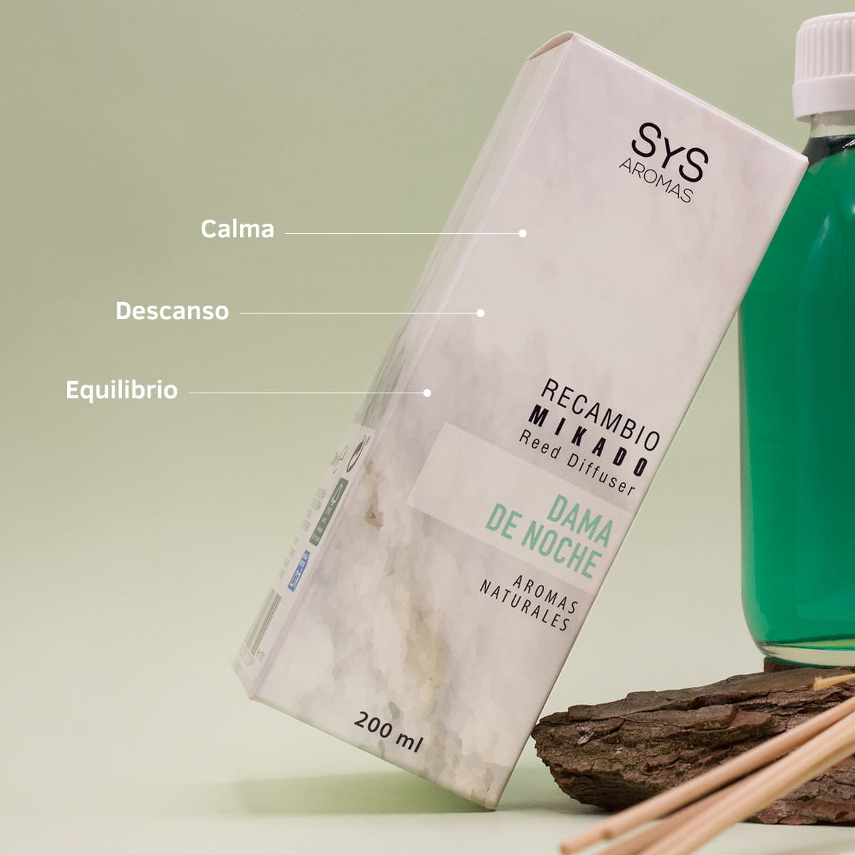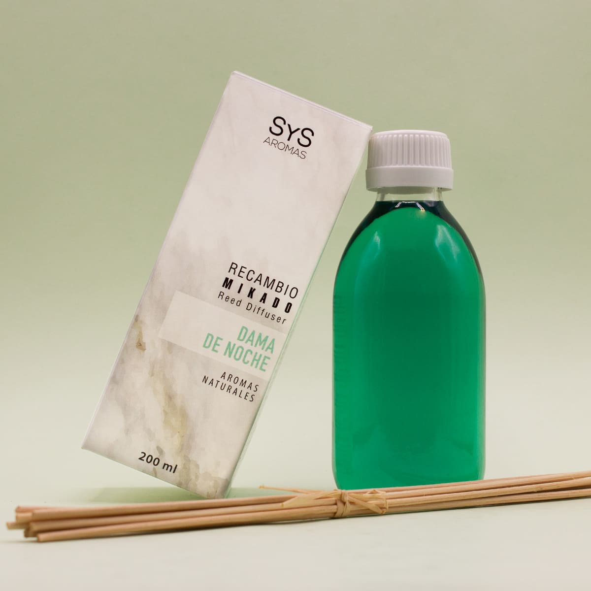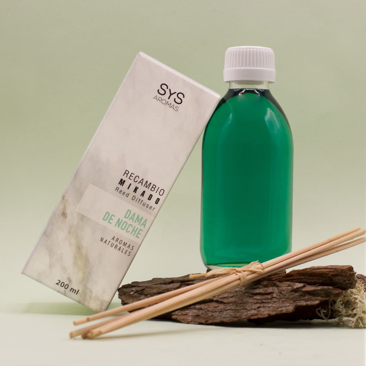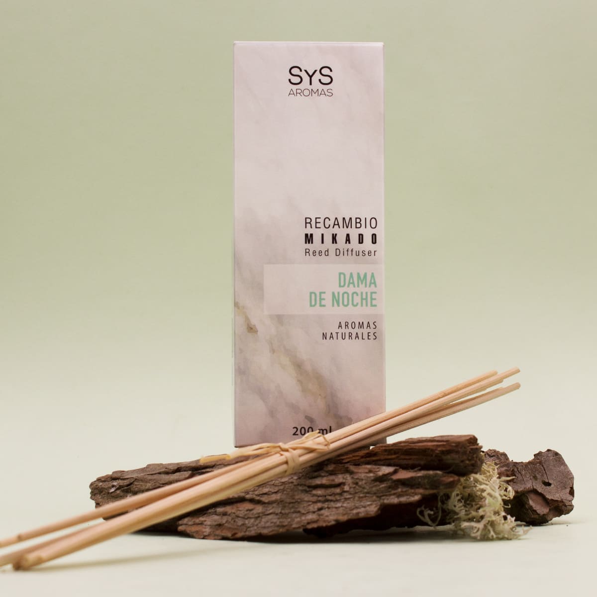 El Recambio Ambientador Mikado de Dama de Noche SYS destaca por sus notas florales, afrutadas y amaderadas con toques exóticos. Un aroma que aporta confort y alivio a cualquier espacio.