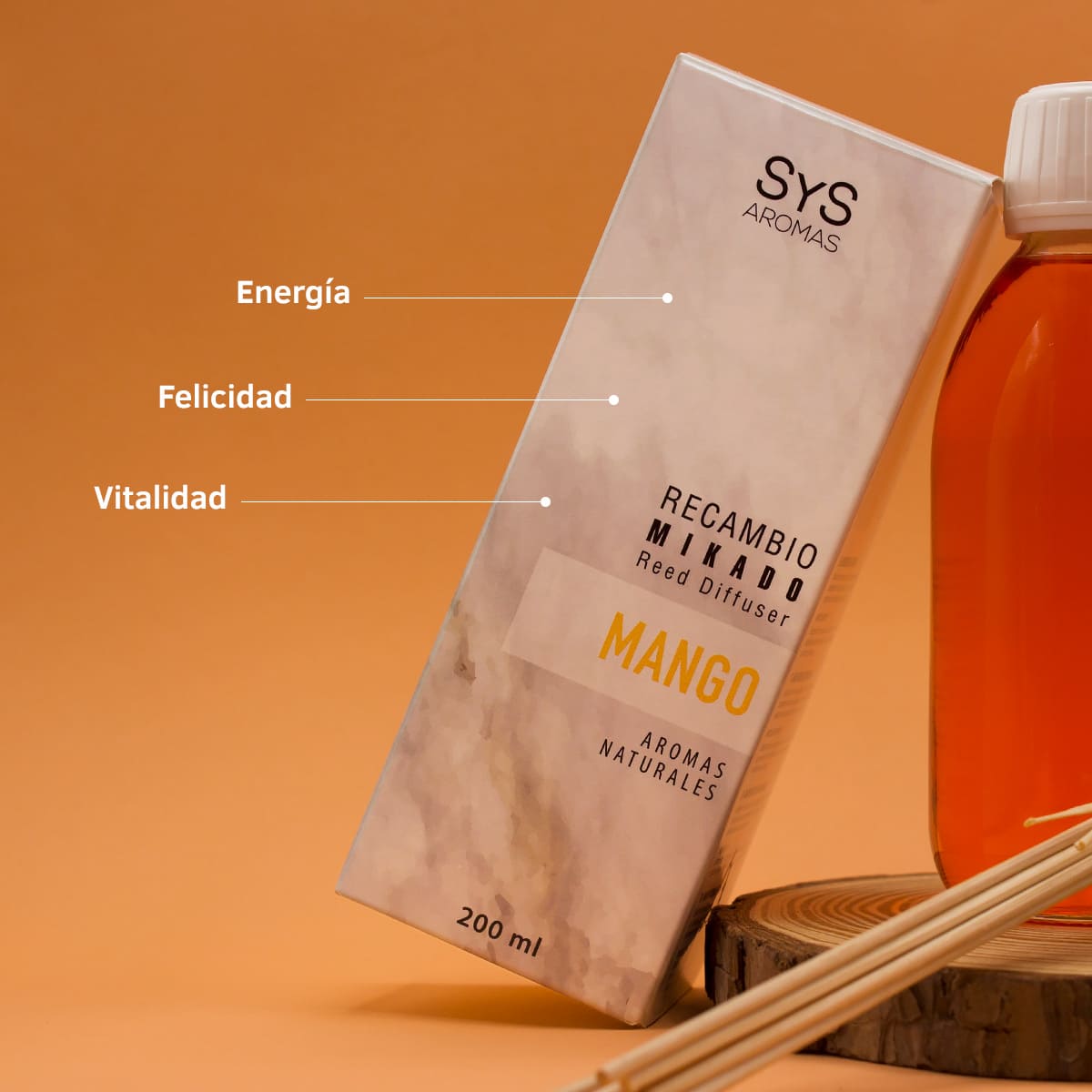 Recambio Mikado Mango 200ml + Palos Mármol SYS Aromas