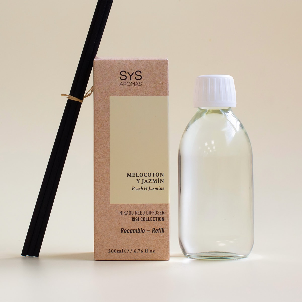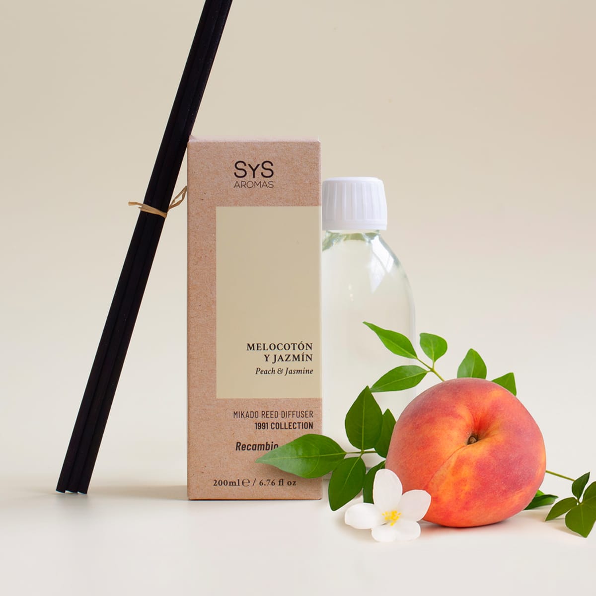 Recambio Mikado Melocotón y Jazmín 200ml + Palos 1991 SYS Aromas