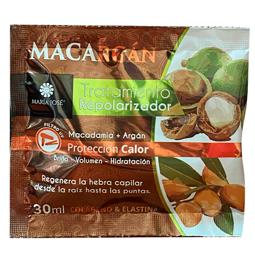Repara y reestructura la hebra capilar, gracias a sus propiedades ya que posee ácidos oleicos, linoleico, vitamina E y esteroles que suavizan el cabello y retarda el envejecimiento capilar, dejando el cabello sedoso, sin frizz y con máxima protección.