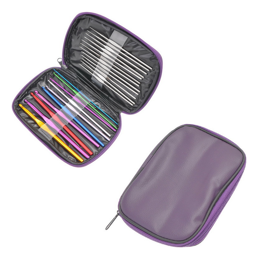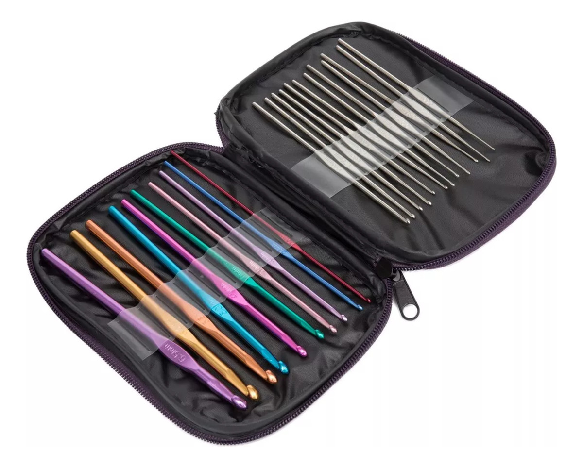 Set Agujas De Crochet Tejido Set 22 Con Estuche De Cuerina