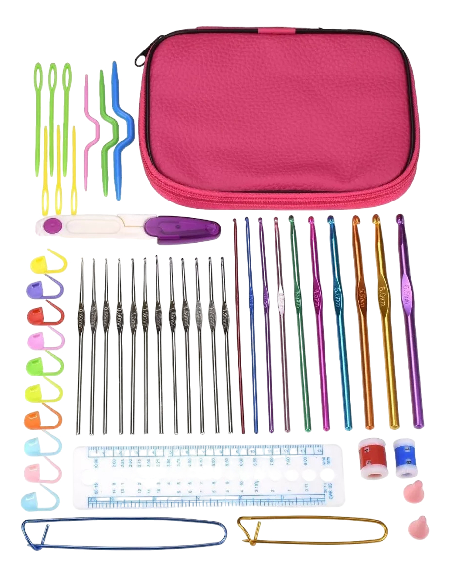 Todo lo que necesitas para tus proyectos de crochet está en este completo set. Incluye 22 agujas de diferentes tamaños, perfectas para cualquier tipo de tejido. Además, el estuche viene con una variedad de accesorios esenciales como regla, tijeras, agujas, contador de puntadas, y más. Todos los accesorios que ves en la foto de portada están incluidos. Ideal para principiantes y expertos. ¡Organiza tus herramientas y disfruta de tus creaciones con este set todo en uno!