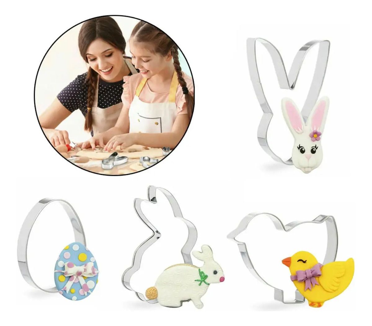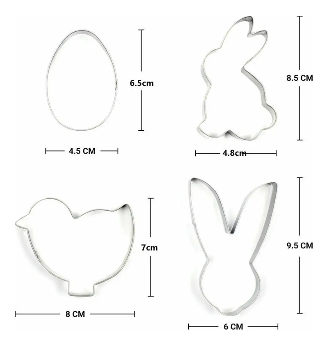 ¡Cortantes en acero inoxidable con diseños de pascua, ideal para galletitas, chocolates y mucho más! ¡Decorá tu mesa con este cortante!