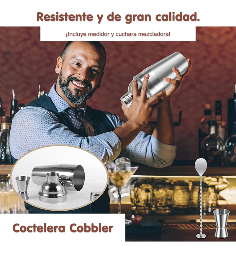 -Coctelera de acero inoxidable: Duradera y resistente a la corrosión, esta coctelera garantiza una mezcla uniforme y rápida de tus ingredientes favoritos. Con filtro incorporado en la tapa para verter sin dejar pasar los hielos o frutas.