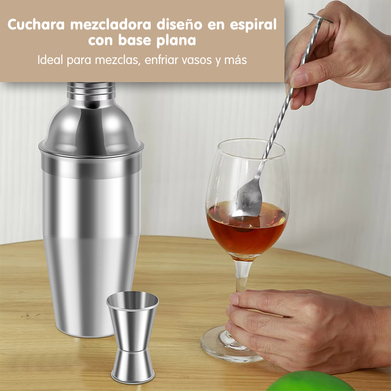 Set de Coctelería Profesional – Coctelera, Jigger y Cuchara Mezcladora