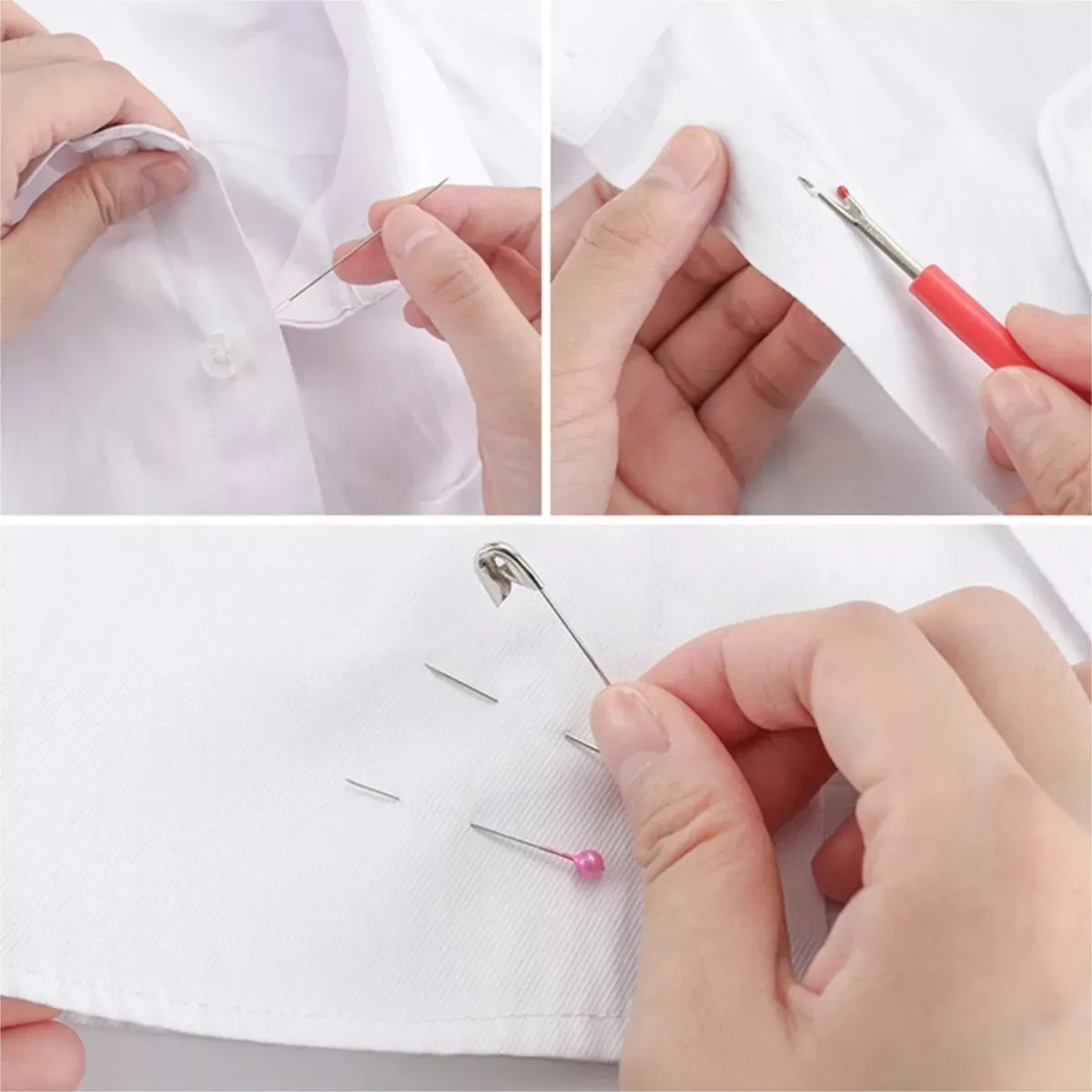 • 30 Carretes de Hilo.• 30 Agujas.• 18 Alfileres.• 5 Clips.• 5 Botones.• 4 Broches.• 1 Enhebrador.• 1 Dedal.• 1 Mini Lupa.• 1 Cinta métrica.• 1 Sacacostura.• 1 Lápiz marcador.• 1 Aguja de crochet 3.5 mm.• 1 Aguja plástica.• 1 Tijera.• Estuche