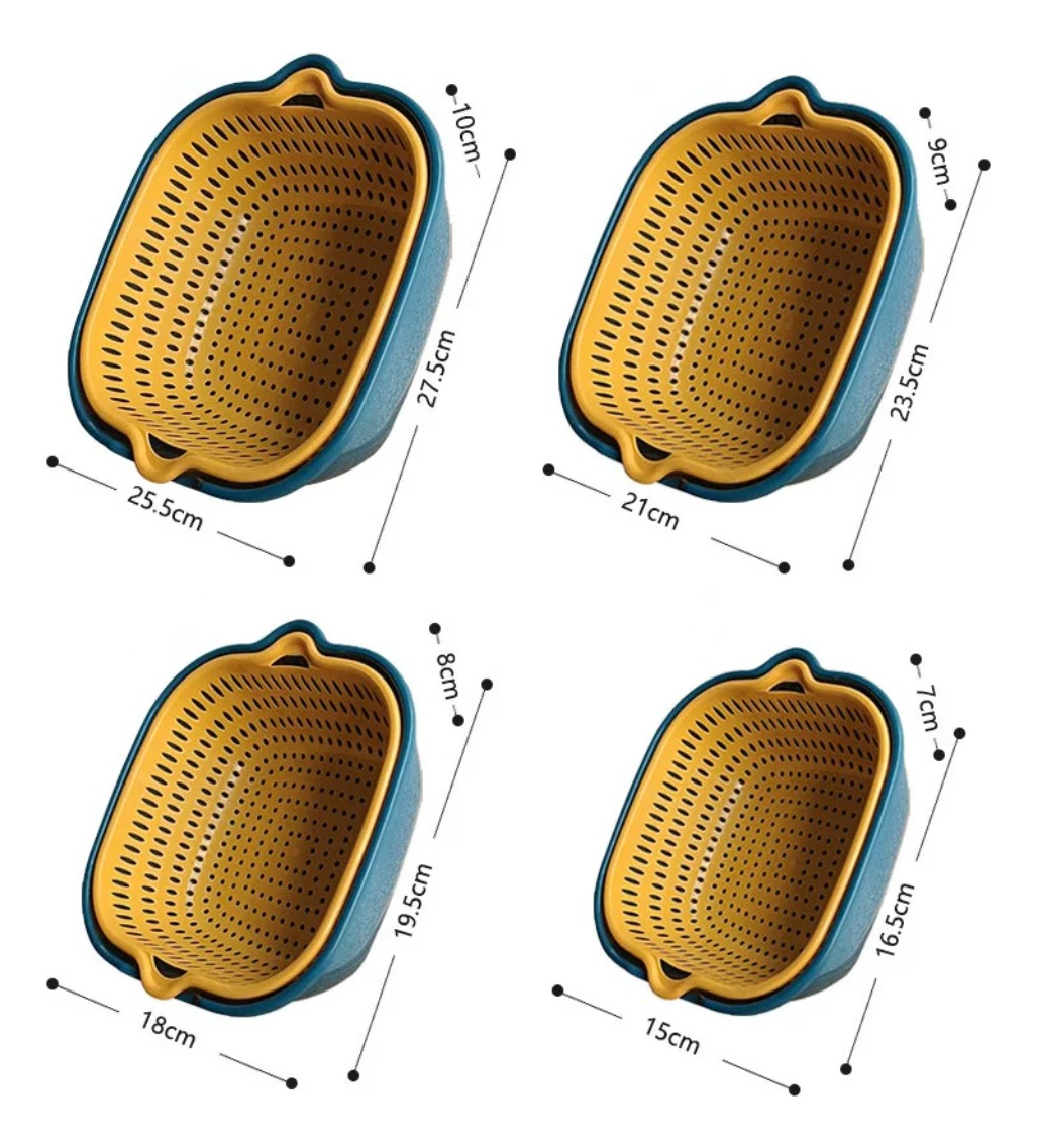 Pack de 4 coladores ideales para colar pastas, lavado de vegetales, y mucho más. Puedes utilizarlos en la heladera para mantener tus alimentos ya que cada colador incluye una base para retener líquidos, lo que lo hace ideal para evitar que alimentos delicados como la lechuga se desmejore.
