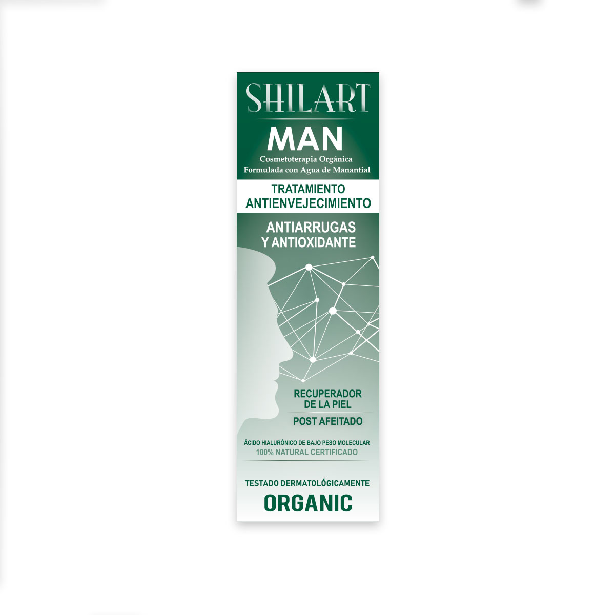 Man Organic 120ml Shilart es una emulsión facial desarrollada para reducir los signos del envejecimiento y la oxidación del cutis. Sus componentes incluyen activos de bajo peso molecular capaces de retener y retener una gran cantidad de agua, lo que ayuda a reparar y compensar los daños causados ​​por el afeitado y otros productos. Además, contiene puro complejo de colágeno, aloe vera, extracto de castaño de indias, hidrolato de hamamelis, hidrolato de arándano, hidrolato de avena y alantoína.