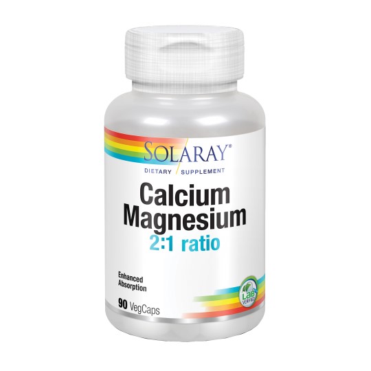 Calcium Magnesium 2:1 Ratio 90caps de Solaray ofrece una fórmula de calidad para ayudar a mantener la salud ósea y dental. Esta combinación eficaz de Calcio y Magnesio le permite disfrutar de una relación entre los dos elementos esenciales en una sola cápsula. Cada porción contiene 750mg de Calcio y 375mg de Magnesio para ayudar a mantener sus huesos y dientes fuertes.