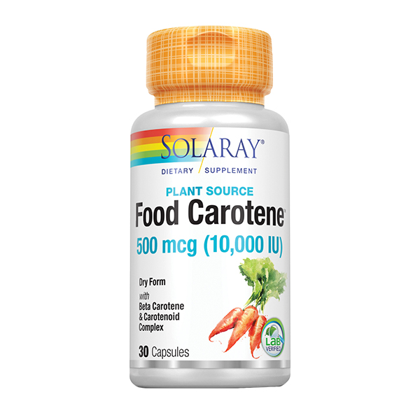Food Carotene 500mcg de Solaray es un suplemento alimenticio que pertenece a la familia de los carotenoides. Esta vitamina A y el beta-caroteno son componentes importantes para la salud como antioxidantes clave que proporcionan una dieta saludable. Los antioxidantes ayudan al cuerpo a destruir o neutralizar radicales libres nocivos que se producen naturalmente y, si no se limitan, pueden dañar los tejidos y órganos.