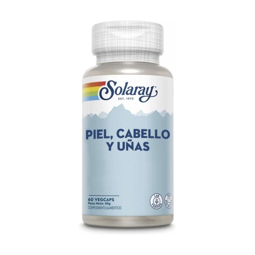 Solaray Piel, Cabello Y Uñas 60 Capsulas Vegetales es un suplemento nutricional diseñado para promover la salud y belleza de la piel, cabello y uñas. Su fórmula única combina una variedad de nutrientes esenciales que contribuyen al mantenimiento de una apariencia saludable y radiante.